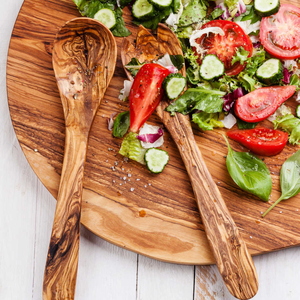 Con los Cubiertos de madera de olivo para ensalada KitchenCraft, sirve ensaladas y platos veraniegos en tus comidas más especiales. ¡Con sus 30 cm de largo!, y fabricados con madera de olivo tallada a mano, que les aseguran una mayor resistencia y durabilidad, estos cubiertos no solo aportarán un aspecto y sabor impecable a tus platos, sino que también le añadirán un toque de elegancia y estilo italiano a tu mesa.