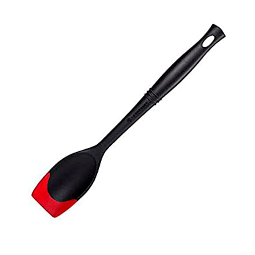 La espátula cuchara Bi Revolution de Le Creuset es ideal para usar el día a día en la cocina. Es una cuchara ideal para un amplio abanico de tareas en la cocina, como servir la comida, raspar y sacar la comida de los recipientes… La cuchara está hecha con silicona de muy alta calidad, y nos permite recoger los jugos sin problema.