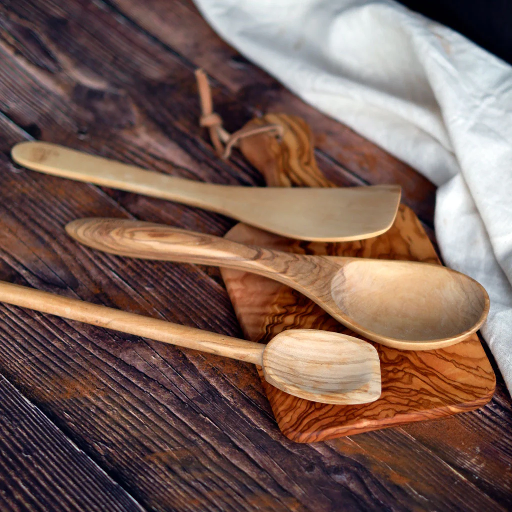 El olivo es ideal para su uso en la cocina por su gran dureza y su baja porosidad, que le otorga propiedades antibacterianas. Es una de las maderas más resistentes a manchas y olores. No requiere cuidados especiales, aunque se recomienda lavarla a mano y dejarla secar en posición vertical. Para mantener la madera como el primer día y evitar que se seque en exceso, es aconsejable aplicarle ocasionalmente aceite vegetal.