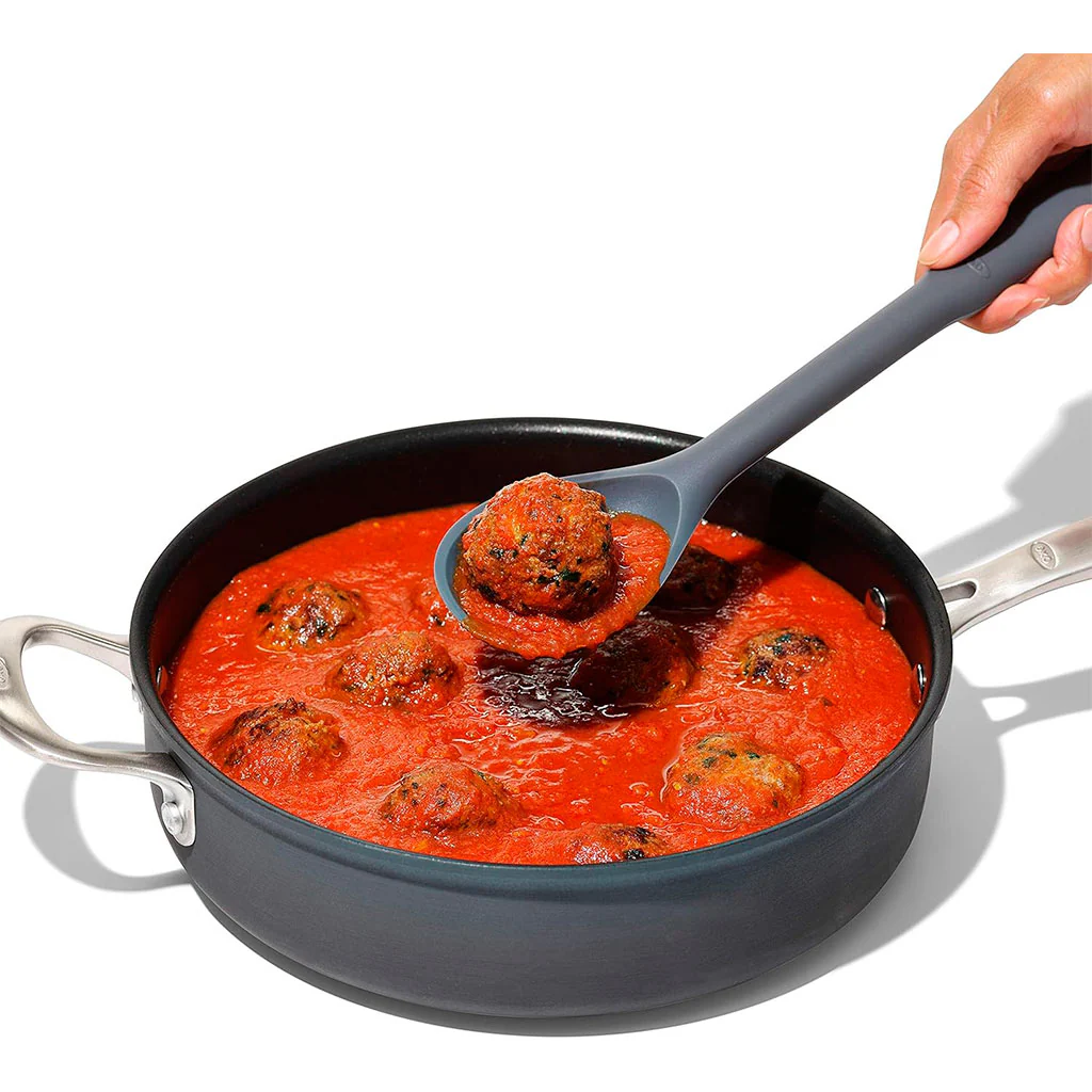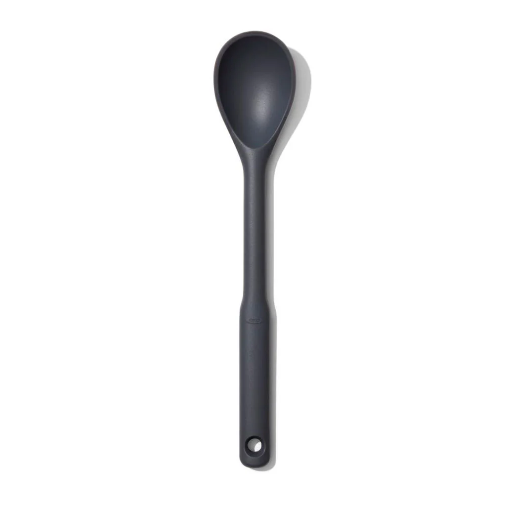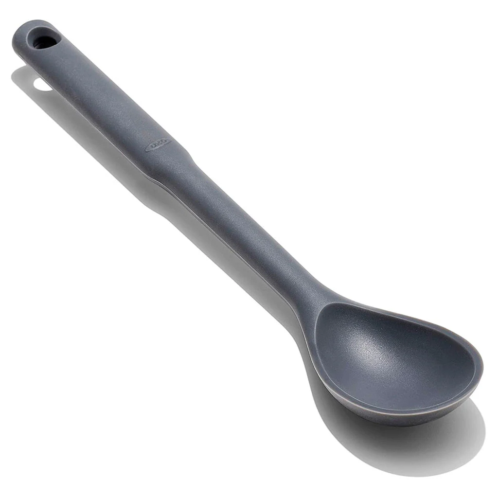 La Cuchara de silicona OXO es un utensilio imprescindible a la hora de remover tus preparaciones en la sartén y cacerola, e ideal para servir ensaladas, legumbres, arroces… Resulta perfecta para recoger el jugo de guisos y asados y rociar las carnes o pescados que estés cocinando. ¡Es muy versátil!
