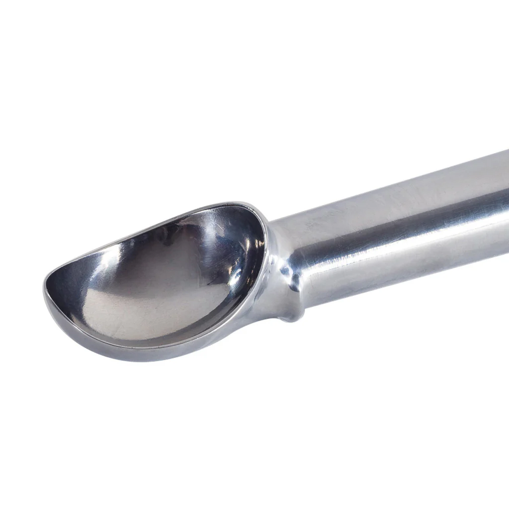 Cuchara especial para servir helado gracias a su funcionamiento termo conductor. El mango transmite el calor corporal y calienta la cuchara, pudiendo coger bolas de helado de 4,5 cm de diámetro con facilidad y mucho menos esfuerzo.