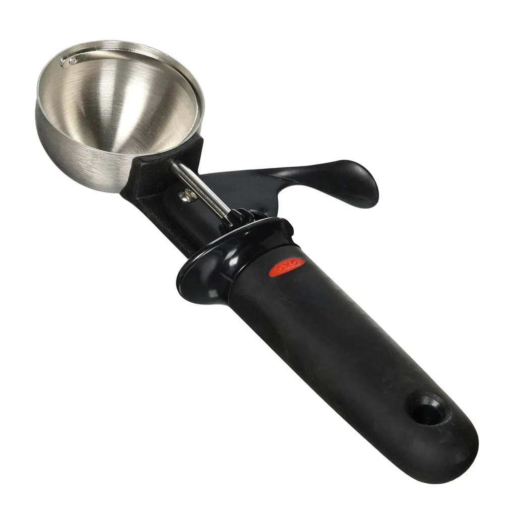La Cuchara para helados Trigger OXO es la ayudante perfecta para porcionar tus bolas de helado. Fabricada en acero inoxidable, cuenta con un cómodo mecanismo de muelle que te permitirá obtener la cantidad precisa de masa o de helado con solo usar el pulgar para presionar el botón lateral.
