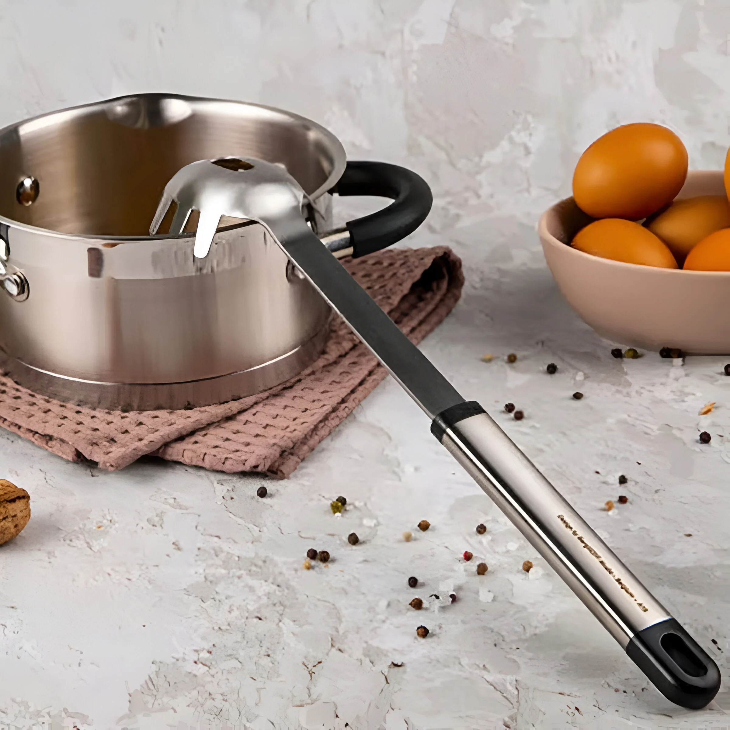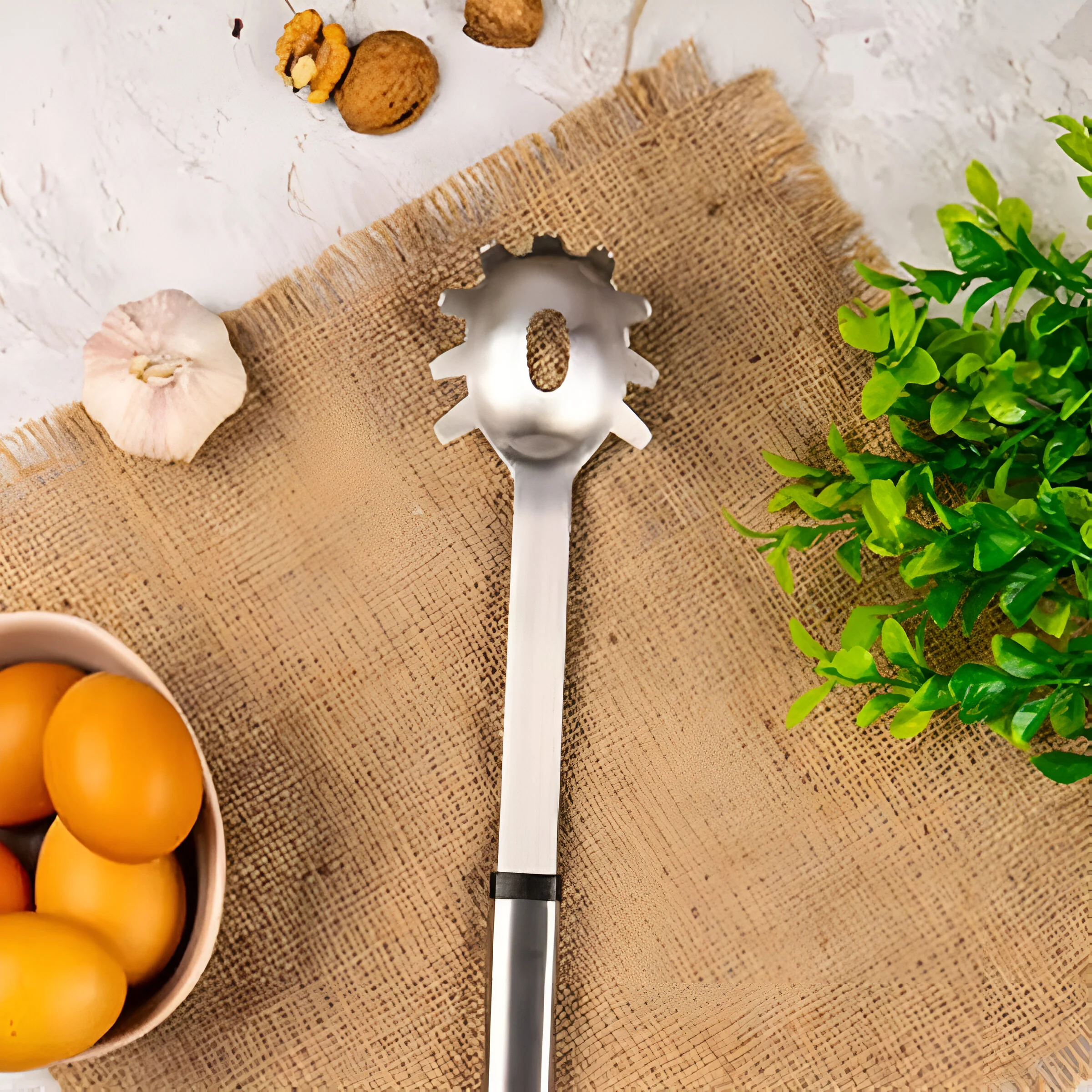 - Esta cuchara es perfecta tanto para servir la pasta como para escurrirla dentro de la olla en la que se está cociendo.