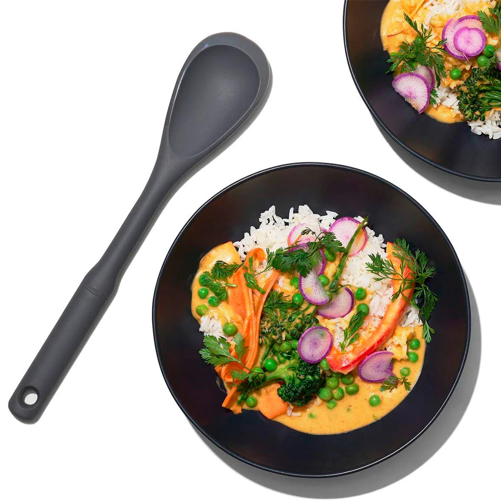 La Cuchara para remover de silicona OXO es un utensilio ideal para usar en todo tipo de ollas, cacerolas o sartenes, incluso las antiadherentes, gracias a su fabricación en silicona de alta calidad que las protege y las mantienen sin arañazos.