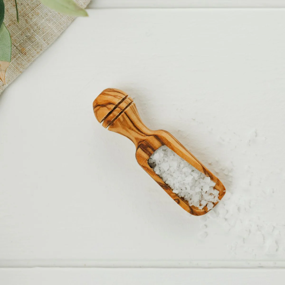 - Cuchara para sal de madera de olivo 100% natural.