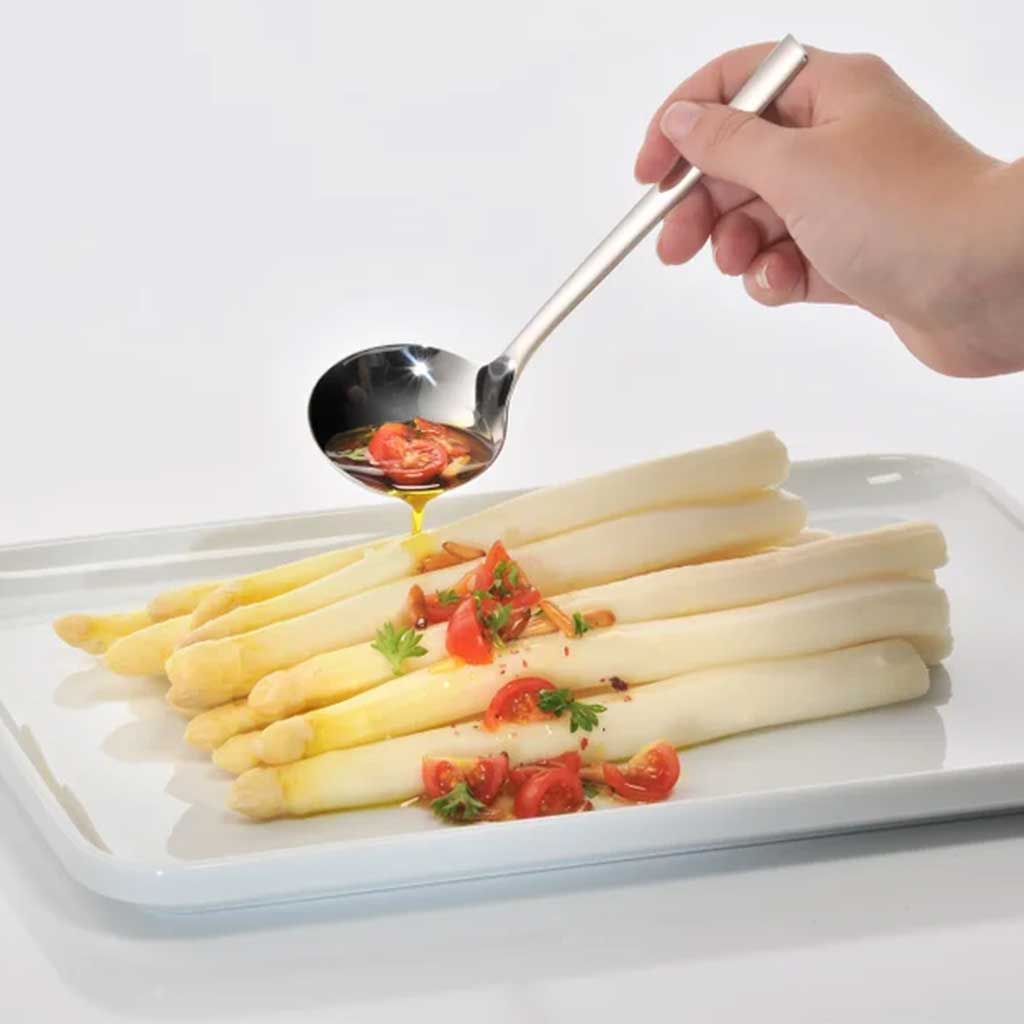 Un cucharón precioso, funcional, resistente incluso a los alimentos ácidos y duradero, que además es apto para su limpieza en lavavajillas.