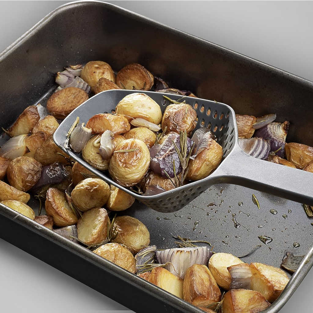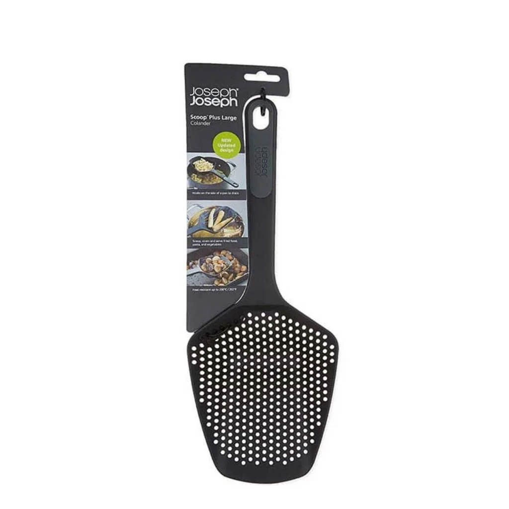 El Cucharón colador Scoop™ Plus G Joseph Joseph es una práctica cuchara perforada con la que podrás remover y servir los alimentos cocinados en la olla, la sartén, la cazuela o la bandeja de horno, al tiempo que escurres el caldo, el agua o el aceite en el que los has cocido, asado o frito. Fabricada en nailon endurecido, totalmente libre de BPA, es ideal para su uso con tus utensilios antiadherentes.