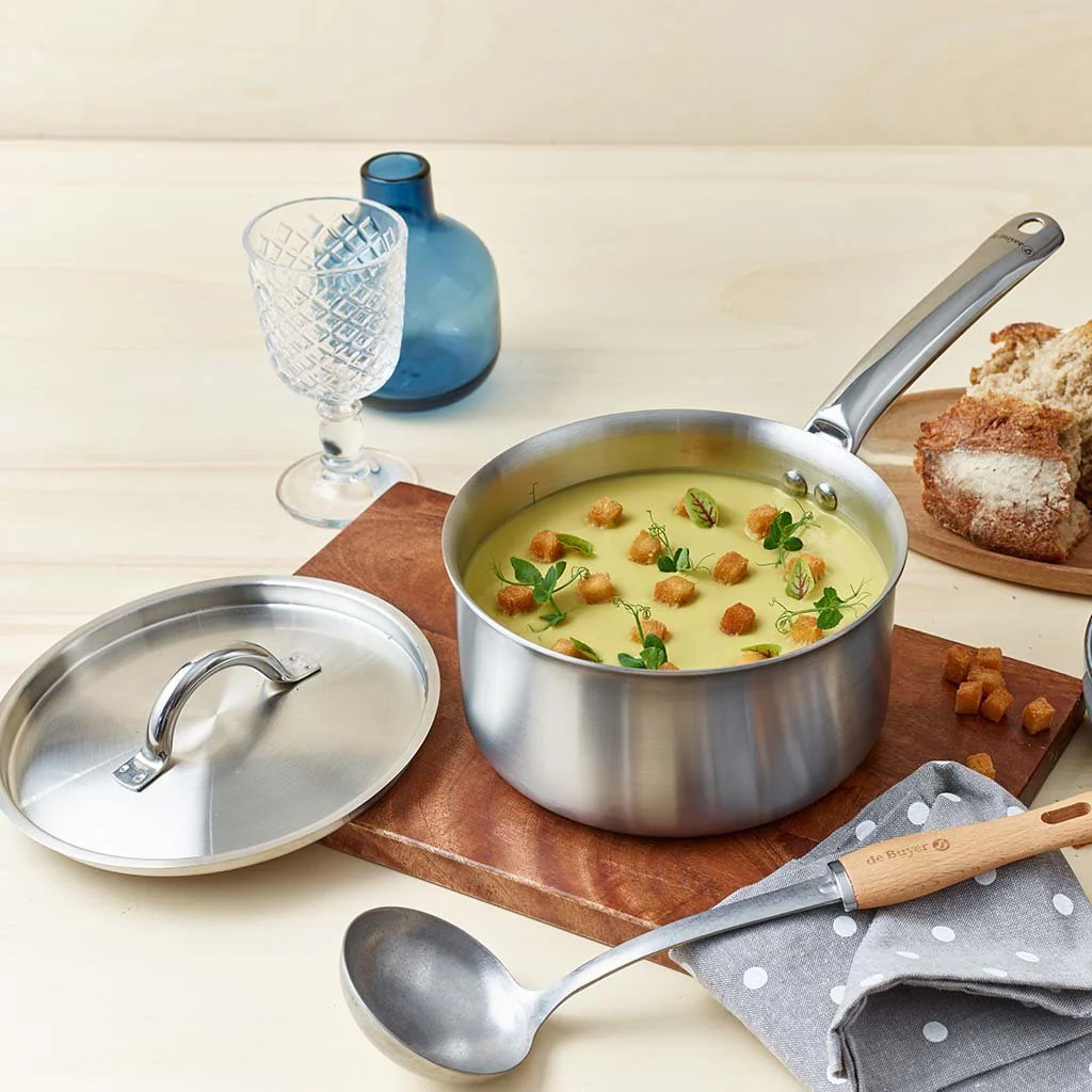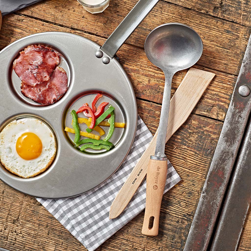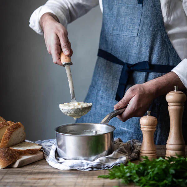 El cucharón de De Buyer es perfecto para servir sopas, cremas y todo tipo de alimentos más líquidos. Un utensilio básico en la cocina fabricado en acero inoxidable con un precioso mango fabricado en madera de haya que le da un aspecto rústico y cálido.