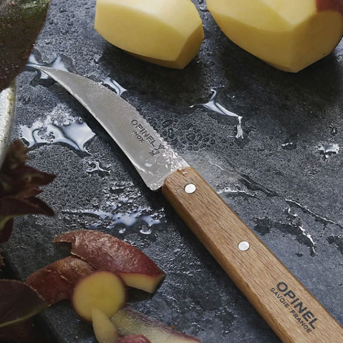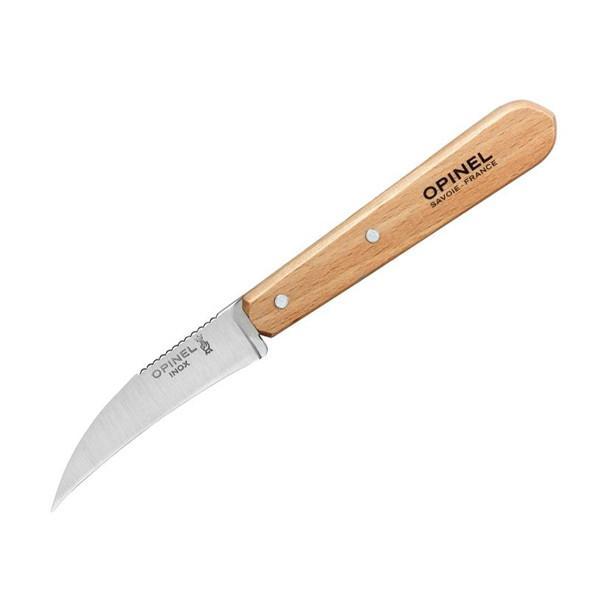 El cuchillo de hoja curva Opinel está especialmente diseñado para pelar frutas y verduras, resultando super eficaz en todo lo que son alimentos de peladura fina (pera, manzana, ciruela…). La hoja, muy afilada, curva y en forma de pico, resulta ideal para cortar frutas y verduras y quitar las partes indeseadas con la puntilla. Además, gracias a su fina hoja, pelas las frutas quitando solamente la fina piel, aprovechando toda la pulpa.