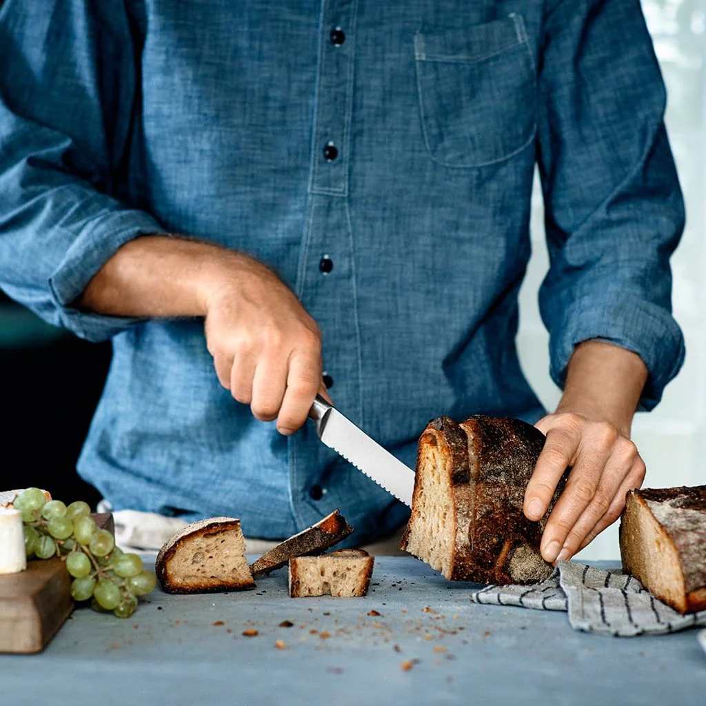 Este cuchillo Grand Gourmet de WMF es un básico en toda cocina. Su diseño y forma de la hoja hace que puedas cortar el pan de forma mucho más fácil. Gracias a su material de acero Cromargan de alta calidad, es un cuchillo que va a perdurar mucho tiempo en tu cocina, ya que resiste los ácidos y cuenta con tecnología Performance Cut que combina un método tradicional de forjado para una mayor precisión y un afilado duradero.