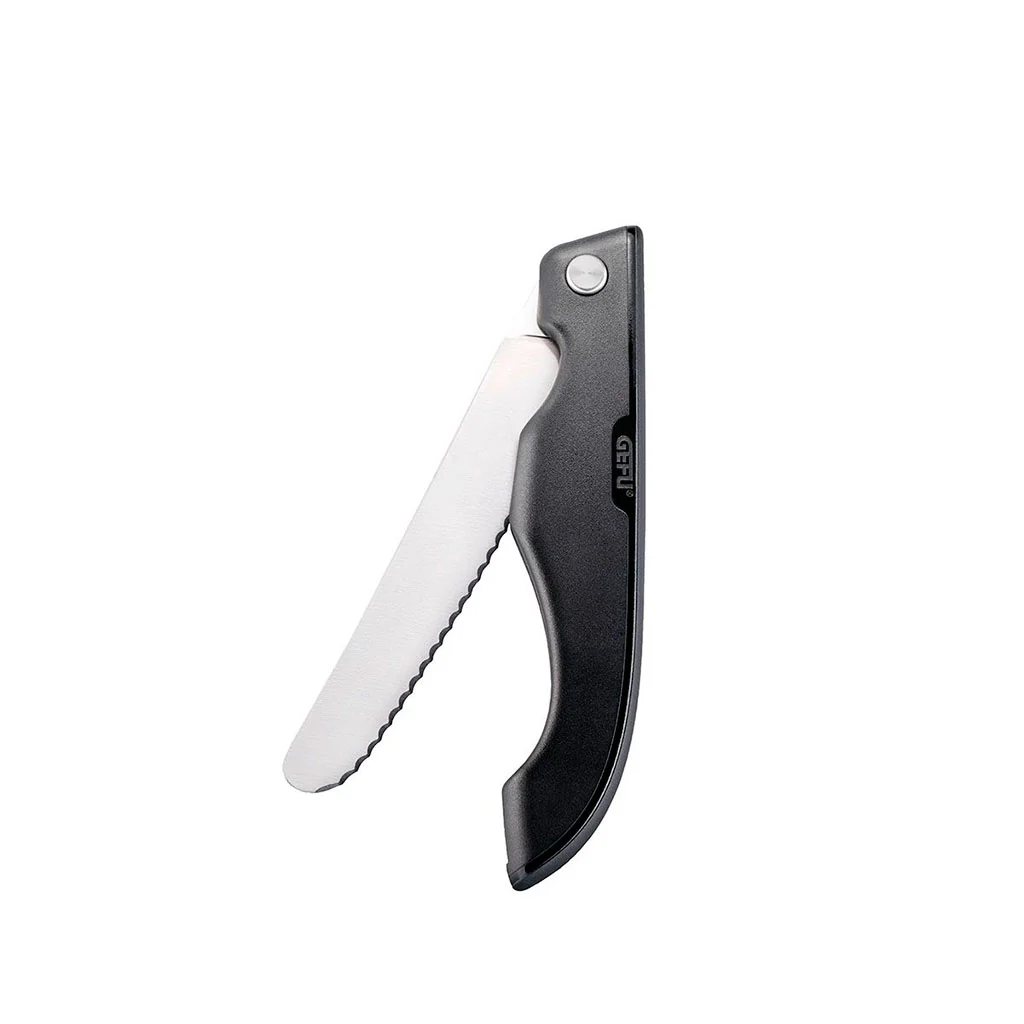 El cuchillo plegable multiusos Move de Gefu será tu compañero ideal para cortar todo tipo de alimentos en cualquier momento y lugar. Su diseño plegable te facilitará su almacenamiento y transporte en cualquier ocasión, lo que lo hace ideal para llevar en excursiones, vacaciones, campings o actividades al aire libre. Como ves, se trata de un cuchillo que se encuentre justo en medio entre un cuchillo con funda y una navaja. Podrás llevártelo fácilmente, con seguridad, almacenarlo donde quieras… ¡Y usarlo para cortar eficientemente siempre que lo requieras!