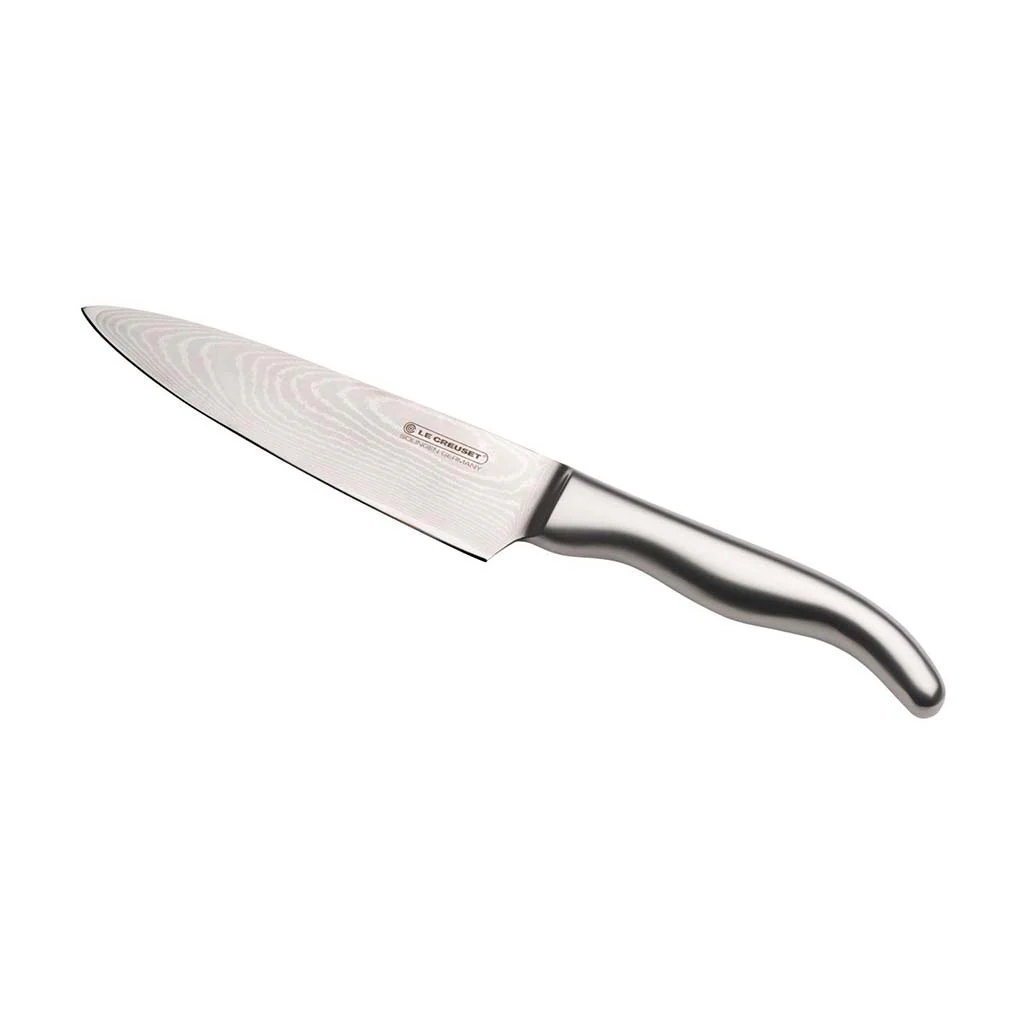 Con los Cuchillos de acero Damasco con mango de acero de Le Creuset podrás picar, cortar, trocear, trinchar o pelar tus alimentos con unas herramientas de corte de calidad excepcional.