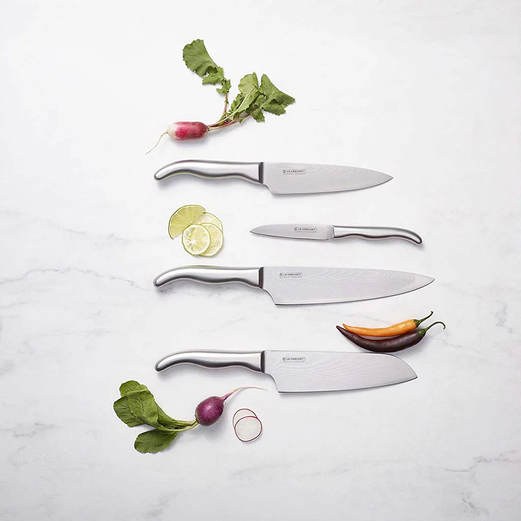 Cuchillos de acero Damasco con mango de acero Le Creuset
