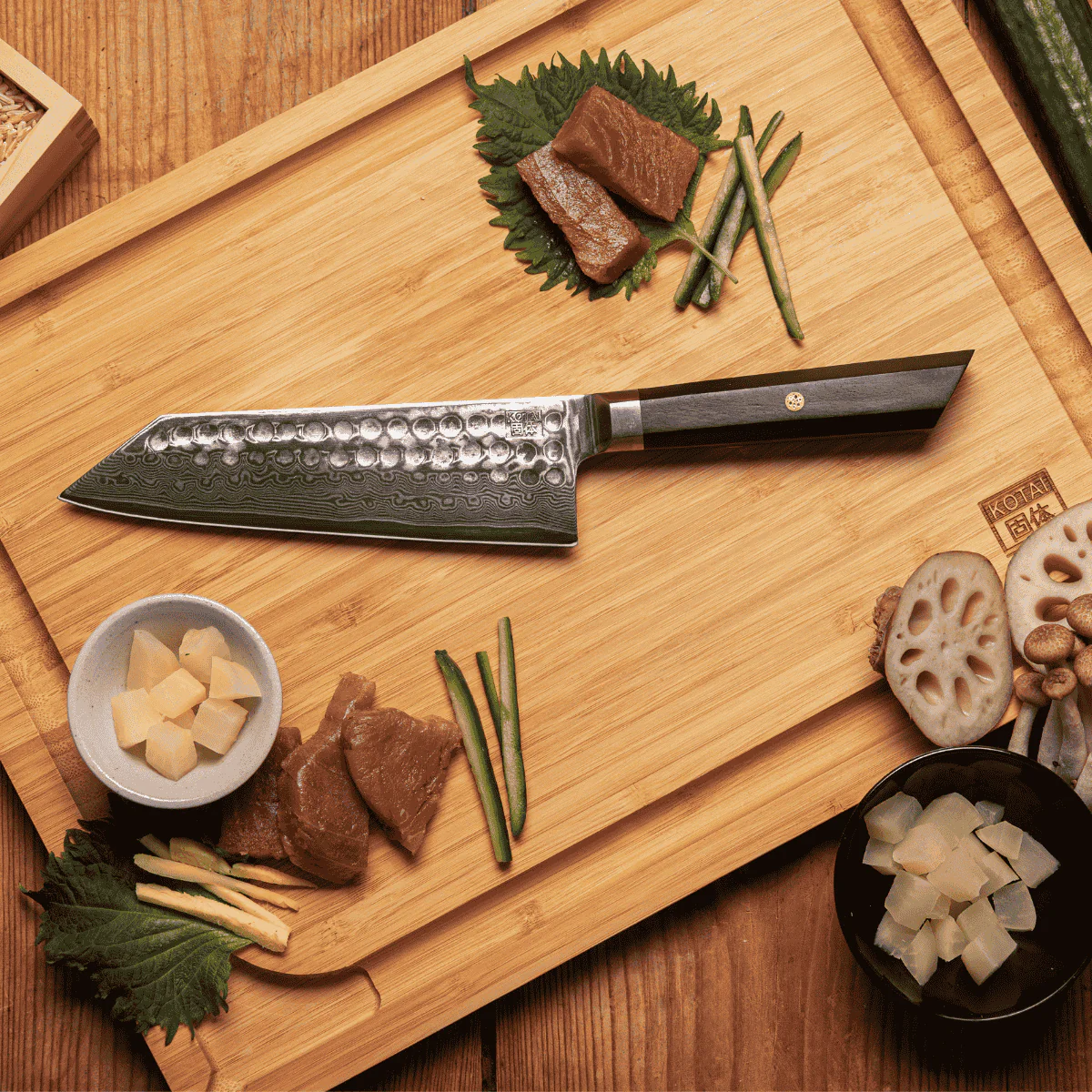 Ligeros, precisos y afilados como los cuchillos japoneses, y tan duraderos, inoxidables y de fácil mantenimiento como los cuchillos alemanes, los cuchillos KOTAI son el equilibrio perfecto entre los cuchillos japoneses y los alemanes, reuniendo las mejores virtudes de ambos mundos.