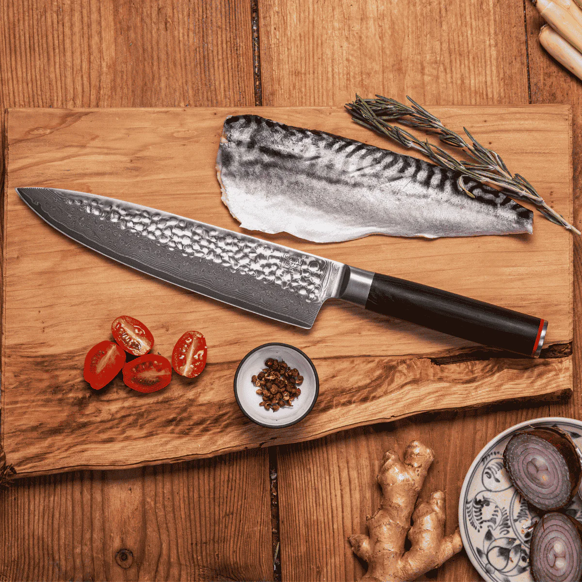 - Chef Gyuto. Cómodo, afilado y multiusos. El Gyuto es el equivalente japonés del cuchillo de chef, ágil y bien equilibrado para un agarre cómodo, es capaz de cortar cualquier cosa excepto huesos y alimentos congelados.