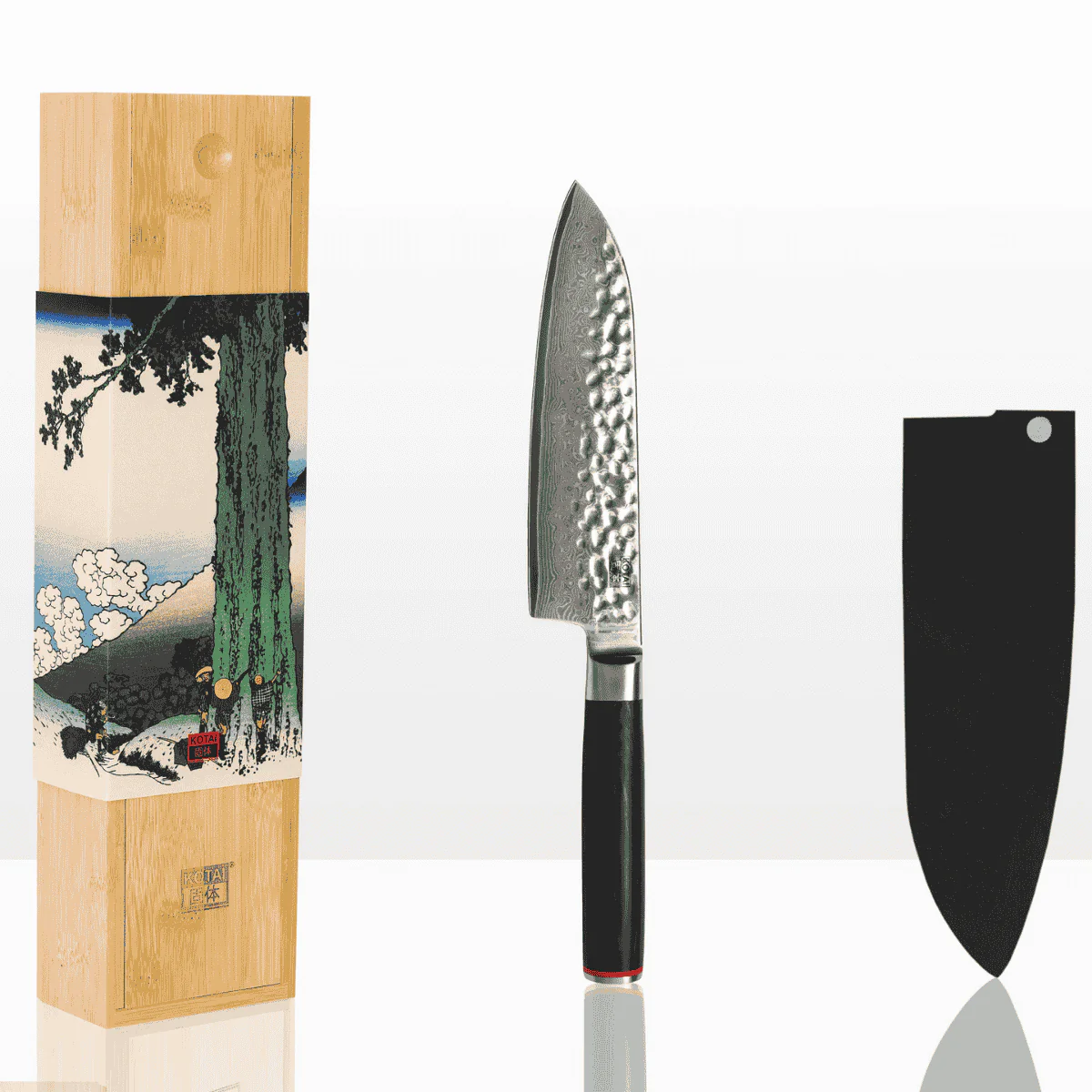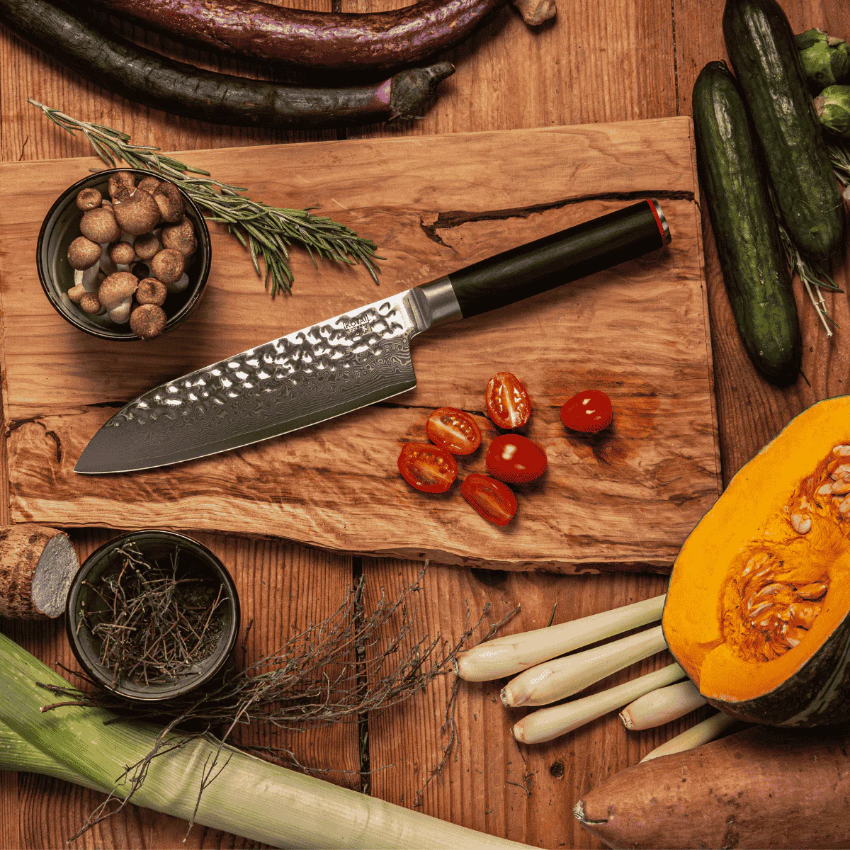 - Santoku. Cómodo, fácil de manejar, afilado y multiusos. El nombre Santoku significa “tres virtudes” en japonés. Su hoja versátil es ideal para picar verduras y frutas, rebanar carnes y preparar pescado.