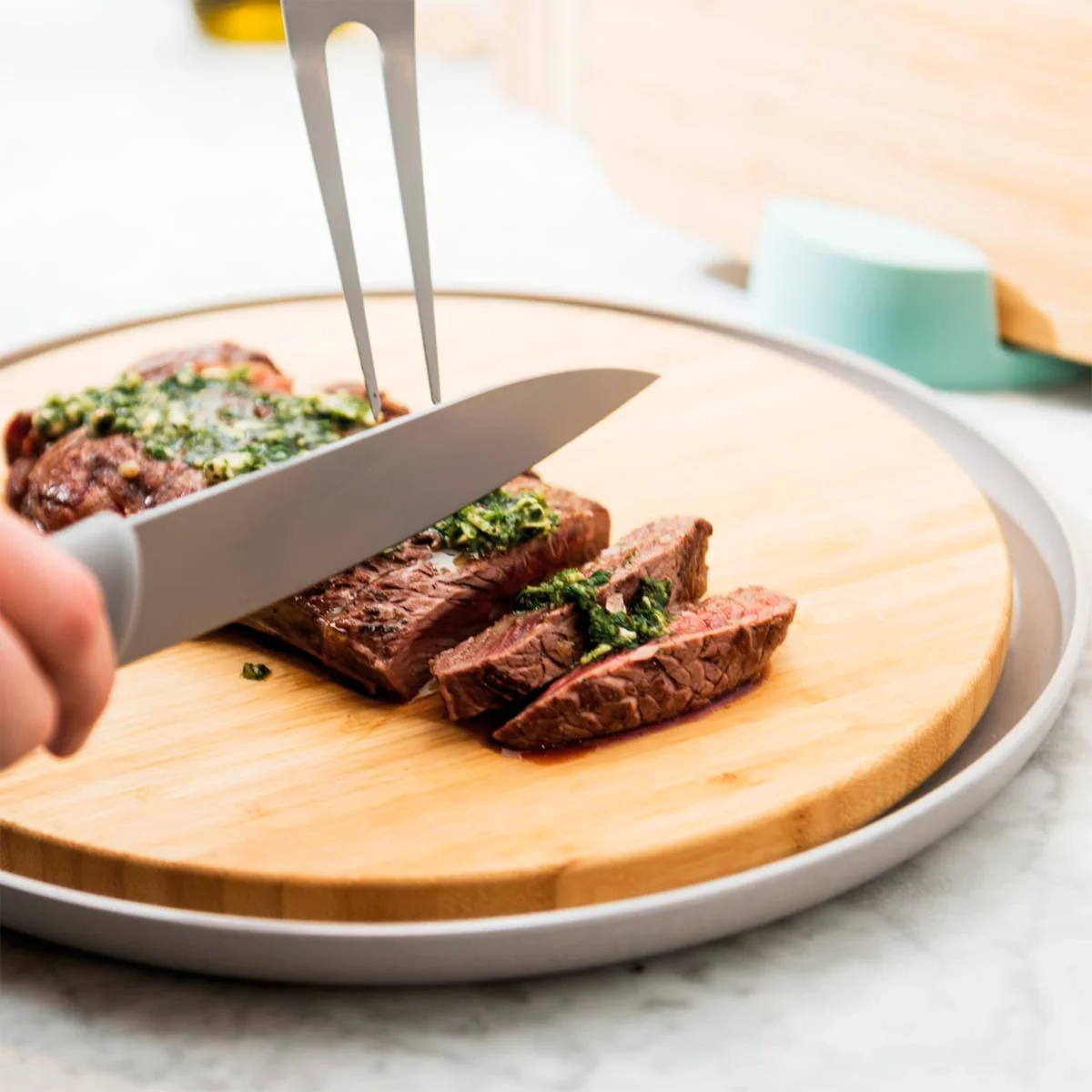 Desde el cuchillo para cortar queso, hasta el que sirve para cortar el pan, el que se utiliza para pelar verduras, el que ha sido diseñado para deshuesar cómodamente e incluso un set de cuchillos chuleteros. El surtido de cuchillos de cocina Berghoff aporta todo tipo de soluciones.