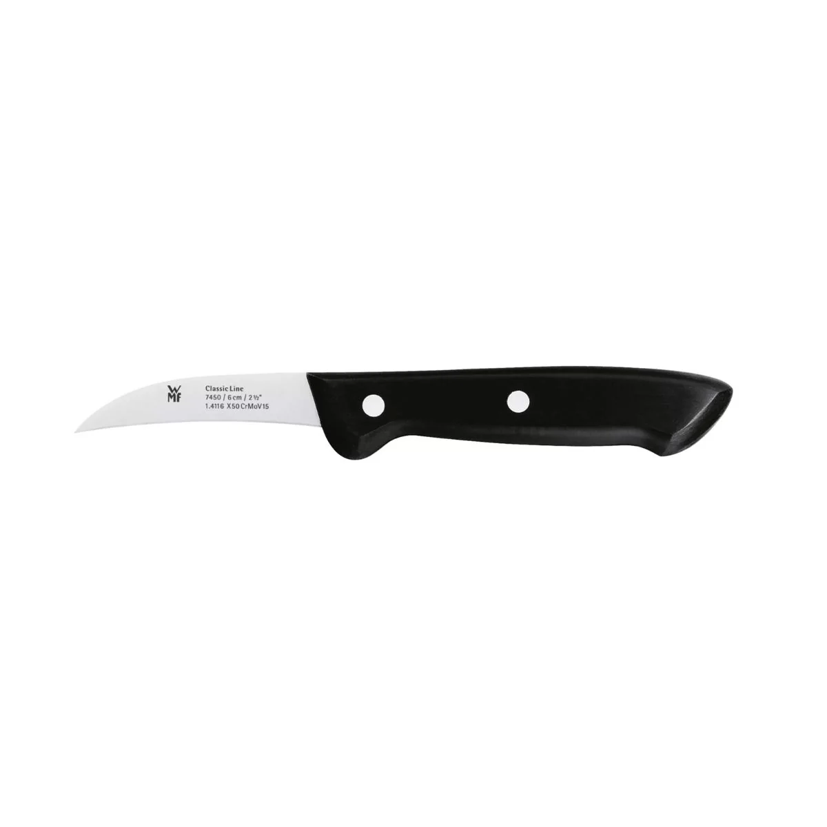 - Cuchillo pelador con hoja de 6 cm. Con forma de pico ligeramente inclinado, para cortar adaptándose a las curvas de la fruta y pelar finamente la piel.
