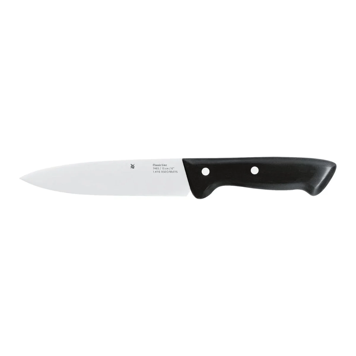 Los Cuchillos de cocina Classic Line WMF lo tienen todo para conquistarte. Son fiables, cómodos, duraderos y están diseñados para su uso diario. Son de los más populares de WMF, y es que la hoja de acero endurecido, de gran calidad y durabilidad, ofrece un excelente afilado, un corte preciso y una enorme resistencia a la corrosión. Su mango de POM, elegante y atemporal, proporciona un agarre ergonómico y muy cómodo. Cortar con estos cuchillos es una tarea de lo más agradable.