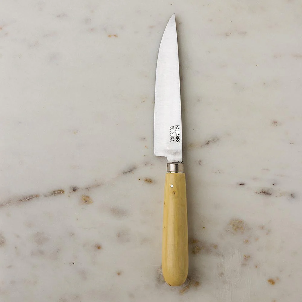 Los cuchillos Pallarès fabricados en acero inoxidable con mango de madera de boj son ideales como cuchillos de mesa a la vez que son perfectos cuchillos de cocina para los más prácticos (estos, a diferencia de los cuchillos de acero carbono con exactamente el mismo look, éstos de inox no se oxidarán).
