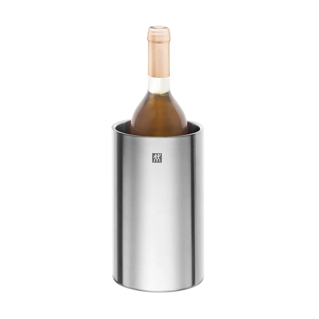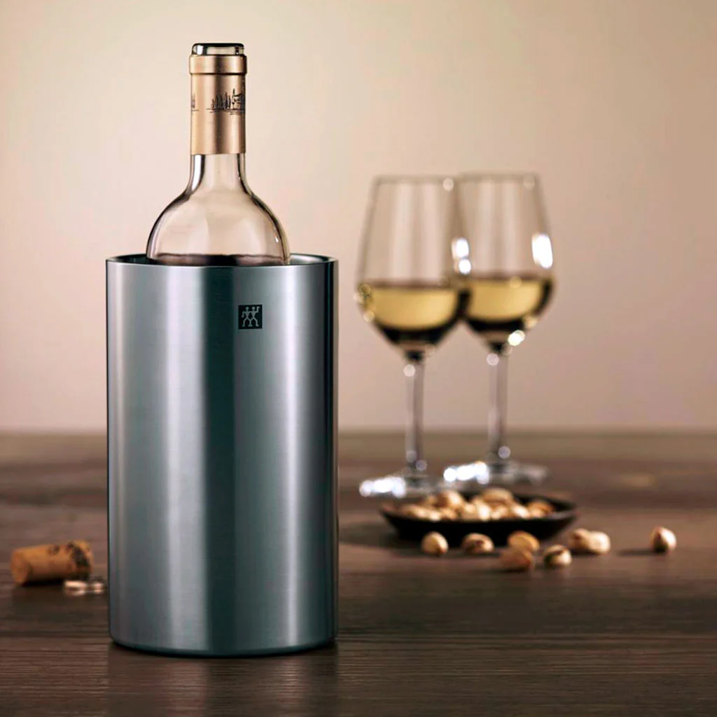 El Enfriador de vino Sommelier de Zwilling es un recipiente de doble pared de acero inoxidable, perfecto para mantener en frío tus botellas de vino durante la comida, sin tener que usar hielo ni agua. Ideal para todas tus botellas de vino, así como para el champán, el cava o tu espumoso preferido.