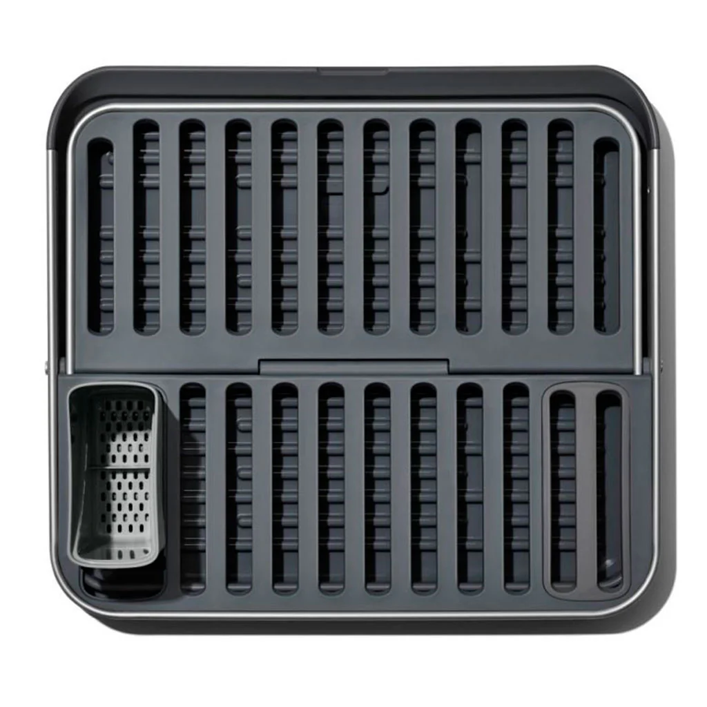 El Escurreplatos plegable de aluminio OXO es una solución eficiente para escurrir los platos, vasos y cubiertos en cualquier cocina. Podrás usarlo tanto plegado o desmontado, como completamente abierto, según la superficie que necesites para colocar las piezas recién lavadas de tu vajilla. Y cuando no lo uses, ciérralo para dejarlo completamente plegado para guardarlo, ocupando el mínimo espacio de almacenaje.