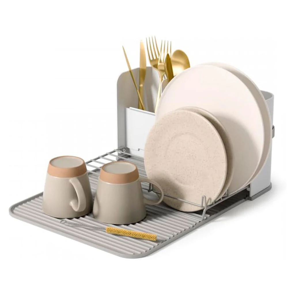 - Su diseño plegable y su alfombrilla apta para lavavajillas hacen que secar y organizar la vajilla sea más fácil y cómodo.