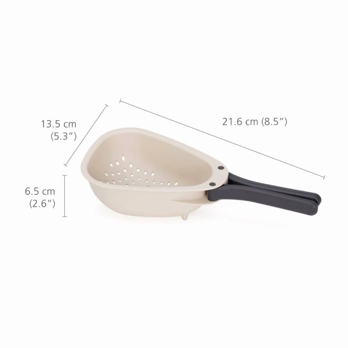 El Escurridor con mangos plegables Droplet Joseph Joseph es justo lo que necesitas cuando quieres lavar frutas o verduras pequeñas sin complicarte la vida. Es ideal para uvas, tomates cherry, cerezas, fresas… todas esas frutas o verduras de dimensiones más pequeñitas que se escapan por todos lados en el fregadero.