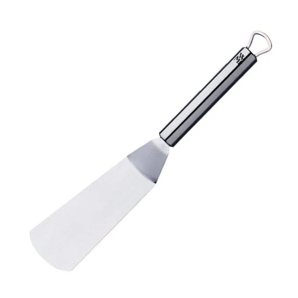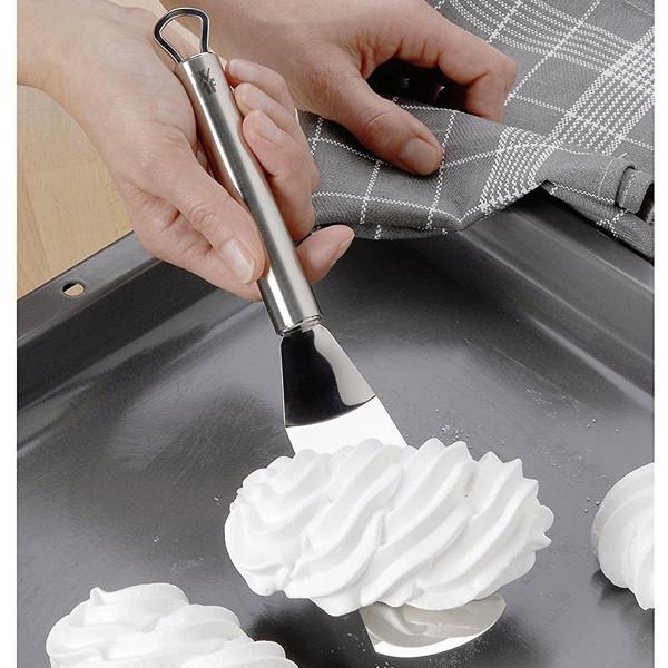 La espátula angular WMF es un accesorio ideal para los forofos reposteros. Fabricada íntegramente en acero inoxidable de alta calidad, es un utensilio que te durará siempre, e ideal para usar para aplicar glasa en pasteles o traspasar galletas y otras preparaciones de la bandeja de horno al plato, como puedes usarla en sartenes y bandejas de horno gracias a su forma arqueada.