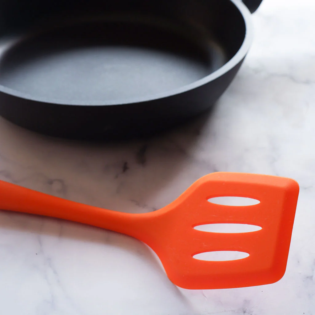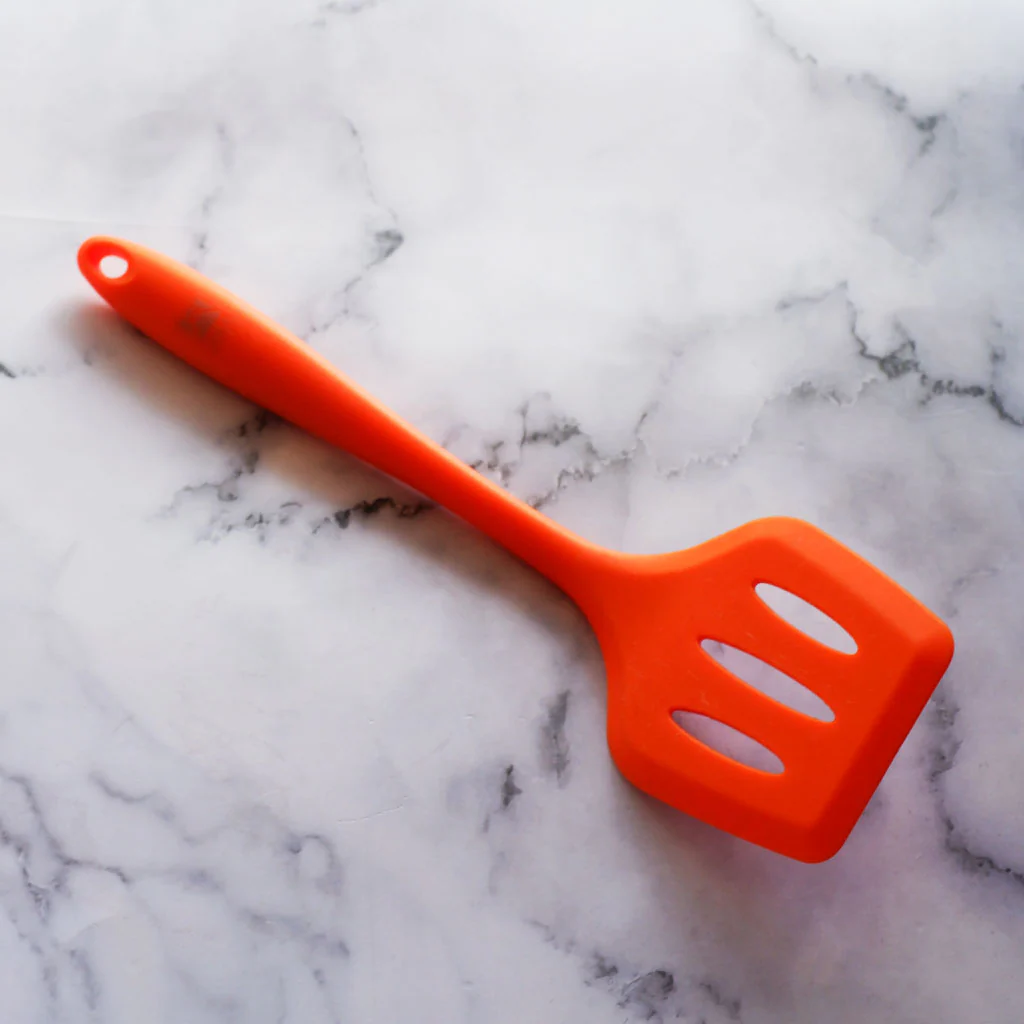 - Espátula 100% de silicona, en color naranja.