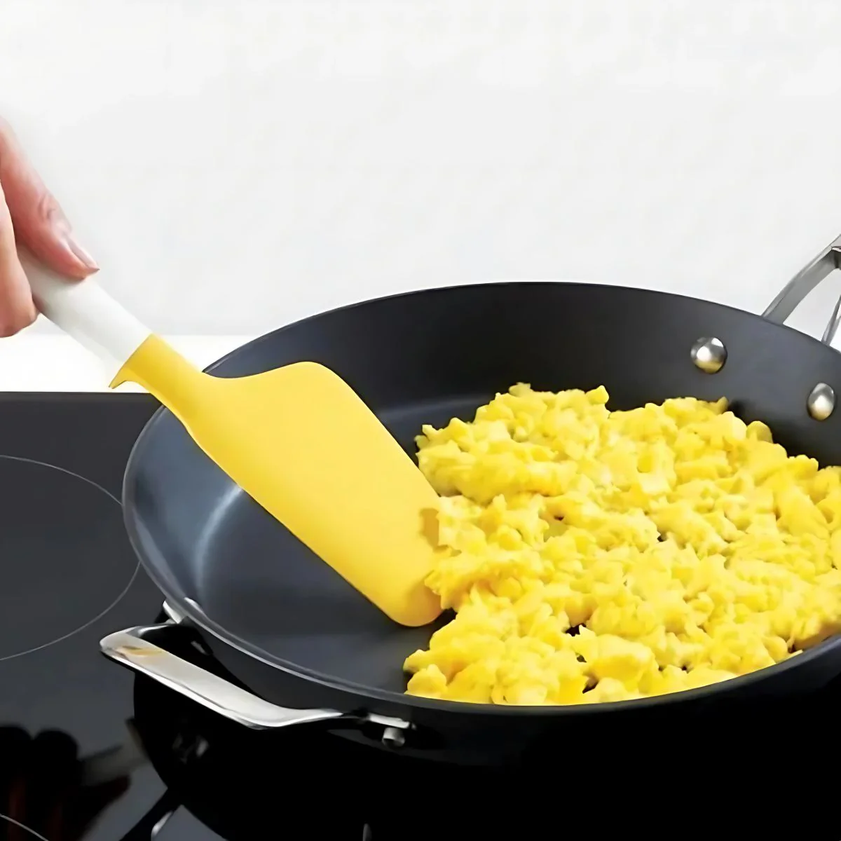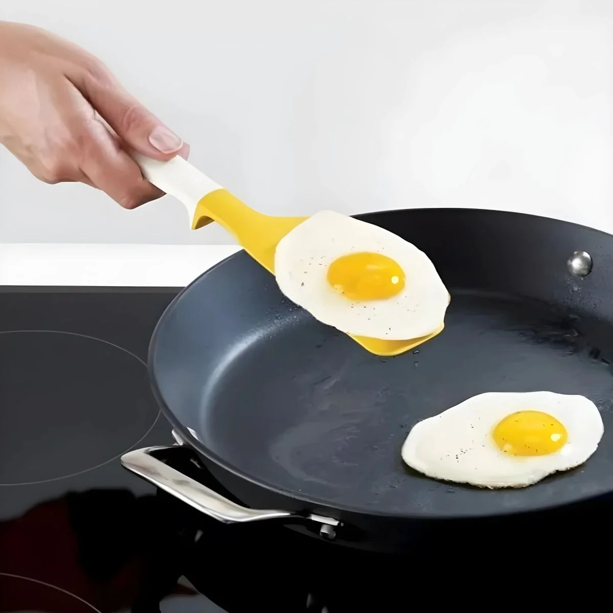 - Es perfecta para preparar, voltear y servir huevos, tortillas y más sin que se peguen ni se rompan.