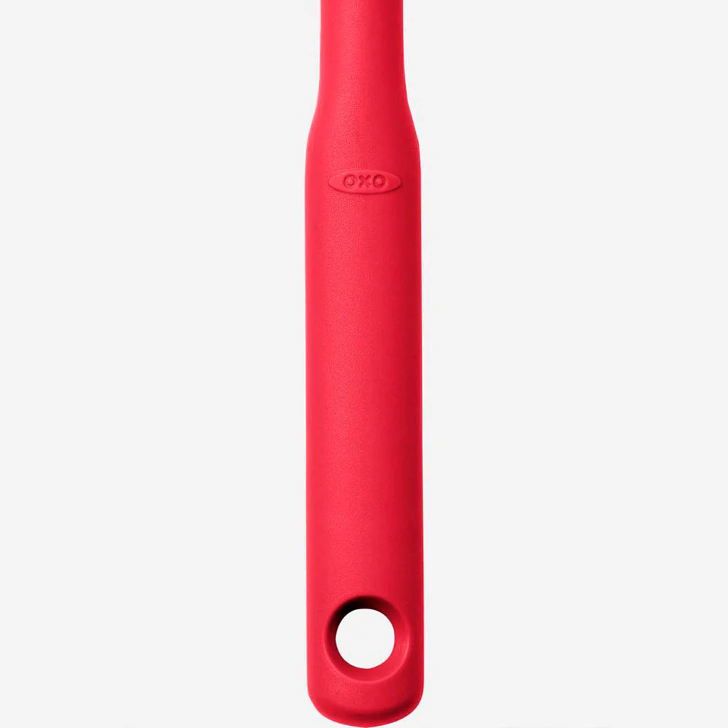 Amplia, funcional, resistente y ergonómica, la Espátula grande OXO lo tiene todo para convertirse en uno de tus imprescindibles. Ya sea para tus elaboraciones saladas como para tus creaciones más dulces, esta lengua de silicona te lo va a poner muy fácil. Su mango grueso y ergonómico te permite mezclar de forma más eficiente, con menos presión y esfuerzo. La lengua es amplia y su diseño en ángulo con borde biselado, te ayudará a rebañar todos los rincones de ollas, boles y cazuelas, ¡incluso los más difíciles!
