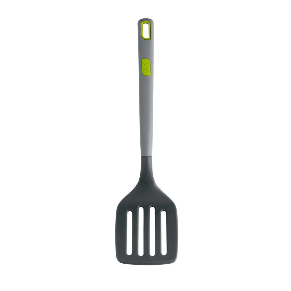 - Espátula ranurada fabricada en silicona y nailon de alta calidad.