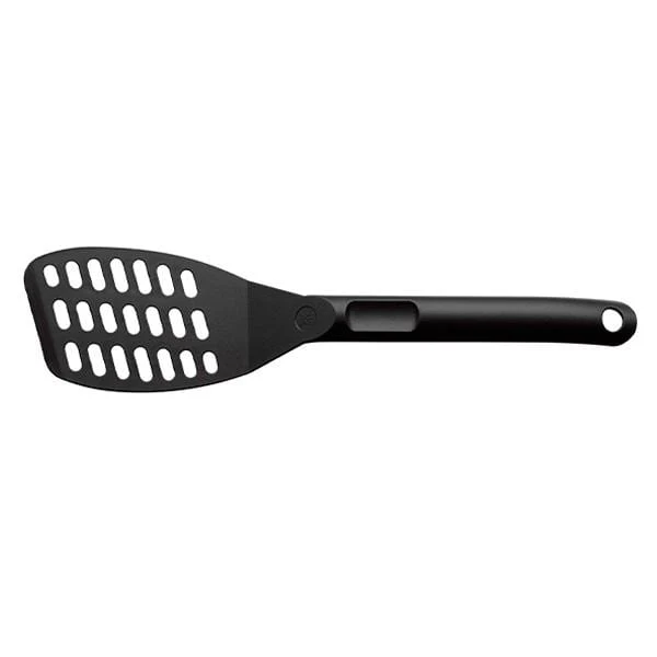 Es también una espátula estupenda para servir tus recetas elaboradas al plato, gracias a su superficie amplia plana. Sus agujeros aseguran una mínima adherencia de los alimentos, pudiendo así servir rápidamente y sin desmontar las elaboraciones, a la vez que permiten filtrar los jugos, de haberlos.