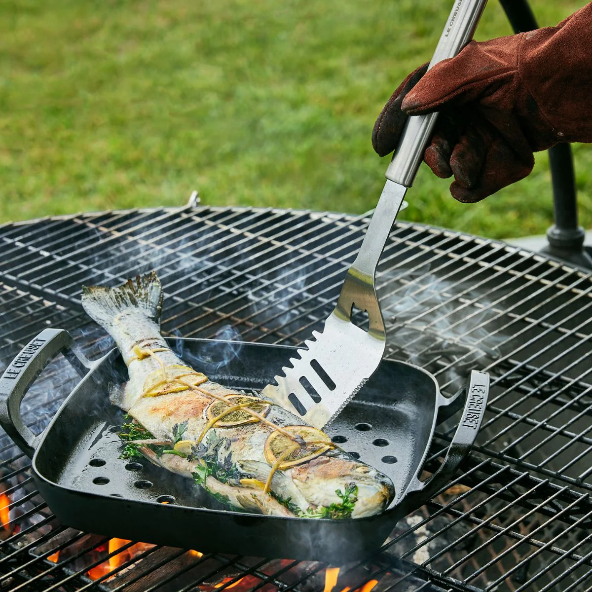 Por qué nos gusta la Espátula ranurada acero inox para barbacoa Outdoor Le Creuset