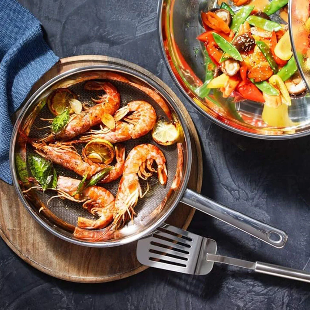 La espátula rasera de acero inoxidable es ideal para usar en sartenes de hierro o de acero inoxidable para voltear o coger alimentos sin riesgo a que puedan romperse.