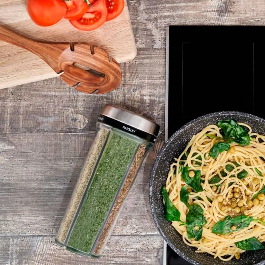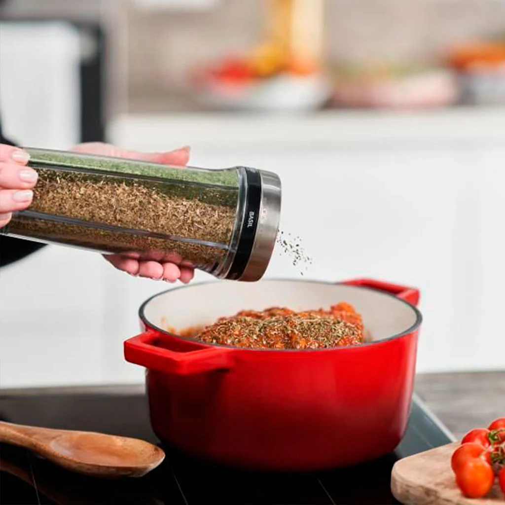 NOTA: Puedes adquirir el dispensador lleno de una selección de especias o hierbas de calidad, o vacío para rellenarlo según lo que necesites.