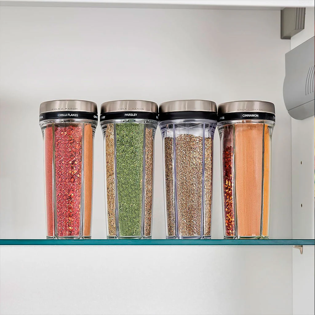 El Especiero lleno Saunderton Cole&Mason es la solución perfecta para organizar tus armarios en la cocina, así como mantener tus especias siempre a mano y a la vista gracias a su formato transparente. Perfecto para los amantes de las especias y hierbas aromáticas, este dispensador no solo es funcional, sino también muy versátil.