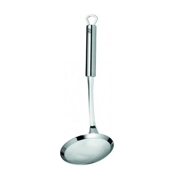 Espumadera de malla fina WMF, fabricada en su totalidad en acero inoxidable Cromargan®. Esta espumadera te ayudará a retirar la espuma que se genera en los hervidos y sopas, retirar de tus preparaciones los alimentos que pretendas sacar de los líquidos durante la cocción, y es un gran aliado a la hora de retirar y escurrir las croquetas, patatas fritas y empanadillas del aceite en que las estás friendo.