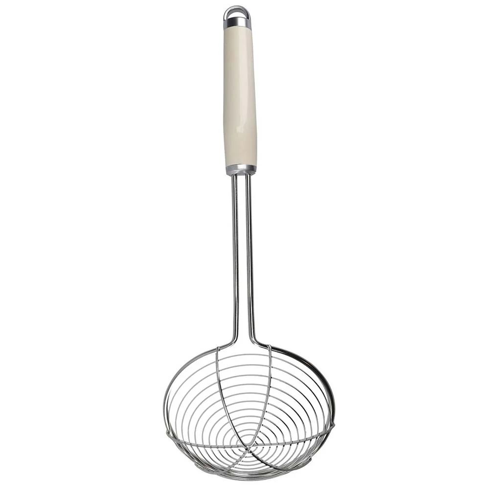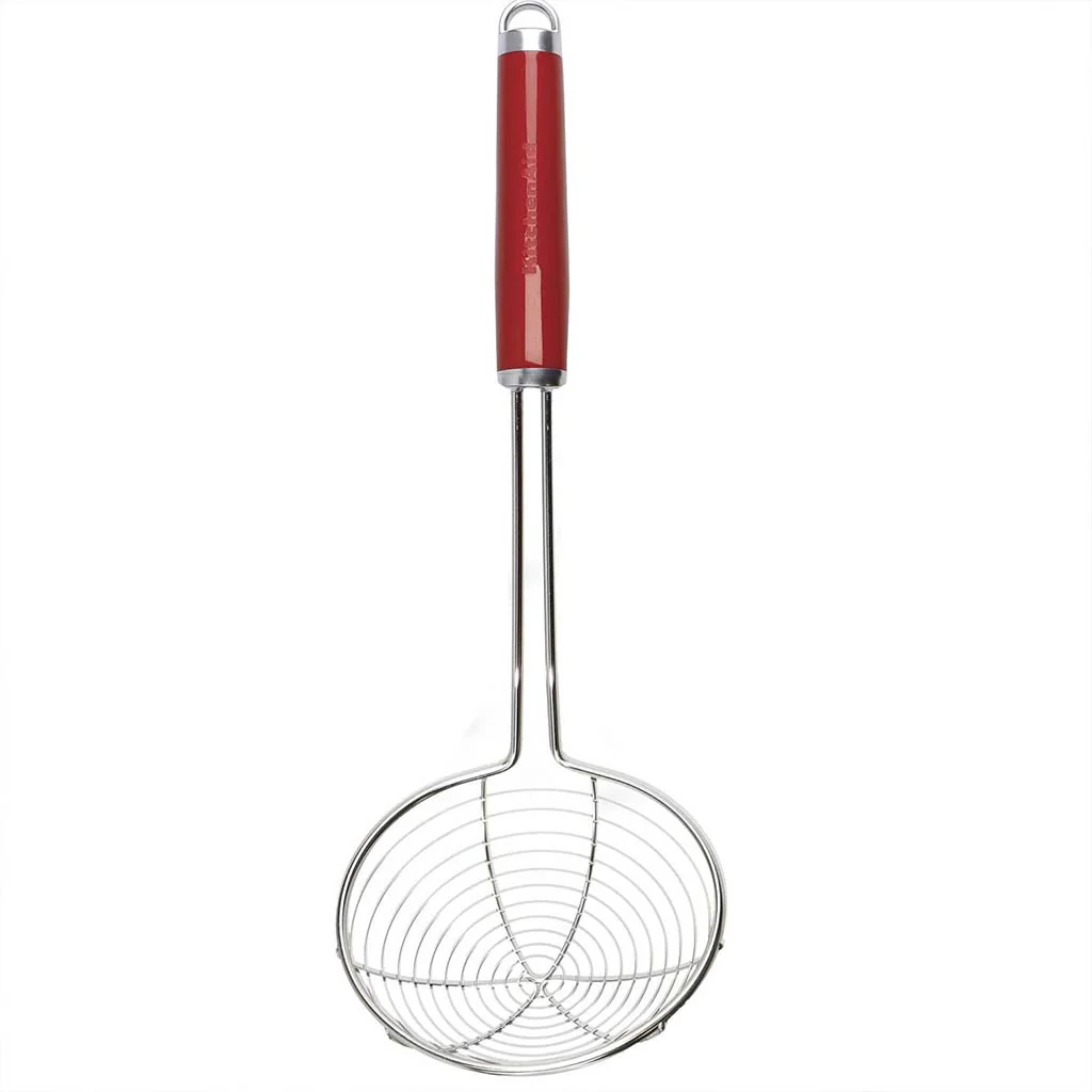 La Espumadera KitchenAid es un imprescindible en tu cocina. La gran capacidad de este colador de araña de acero inoxidable es ideal para filtrar el líquido de la cocción, el aceite de tus frituras o para remover los salteados que prepares en el wok.