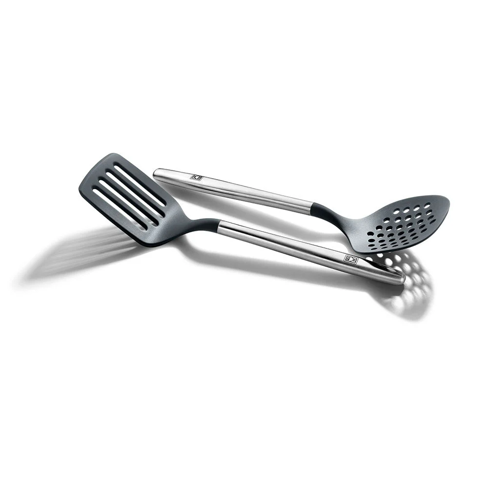 - Espumadera de silicona y nailon con mango de acero inoxidable.