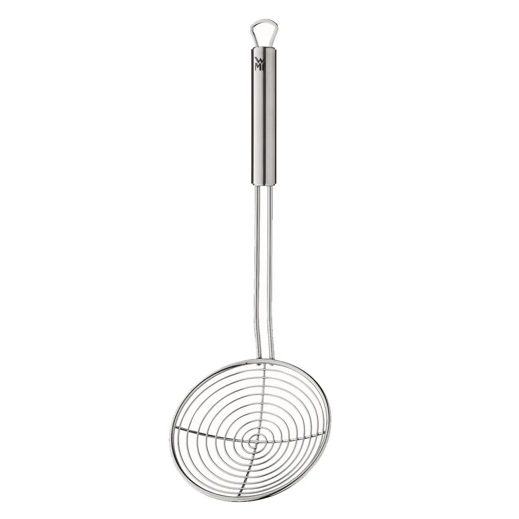 La espumadera WMF de acero inoxidable es un imprescindible en cualquier cocina. Es ideal tanto para quitar la espuma y residuos al hacer sopas y caldos u hervir distintos alimentos, como es el elemento ideal para escurrir. ¡Y un imprescindible a la hora de freír! Al ser de inox, no sufre ningún deterioro a pesar de entrar en contacto con aceite muy caliente, así que esta espumadera WMF es tu aliado a la hora de retirar croquetas, empanadillas, calamares y cualquier otra fritura habitual del aceite. Retirarás y escurrirás de la forma más práctica y rápida posible.