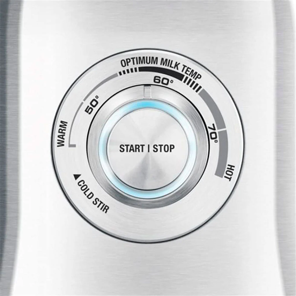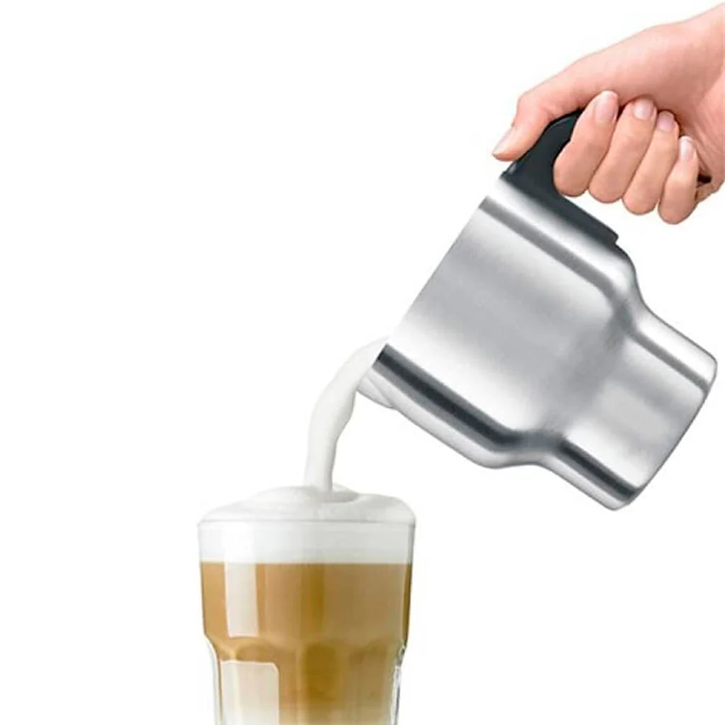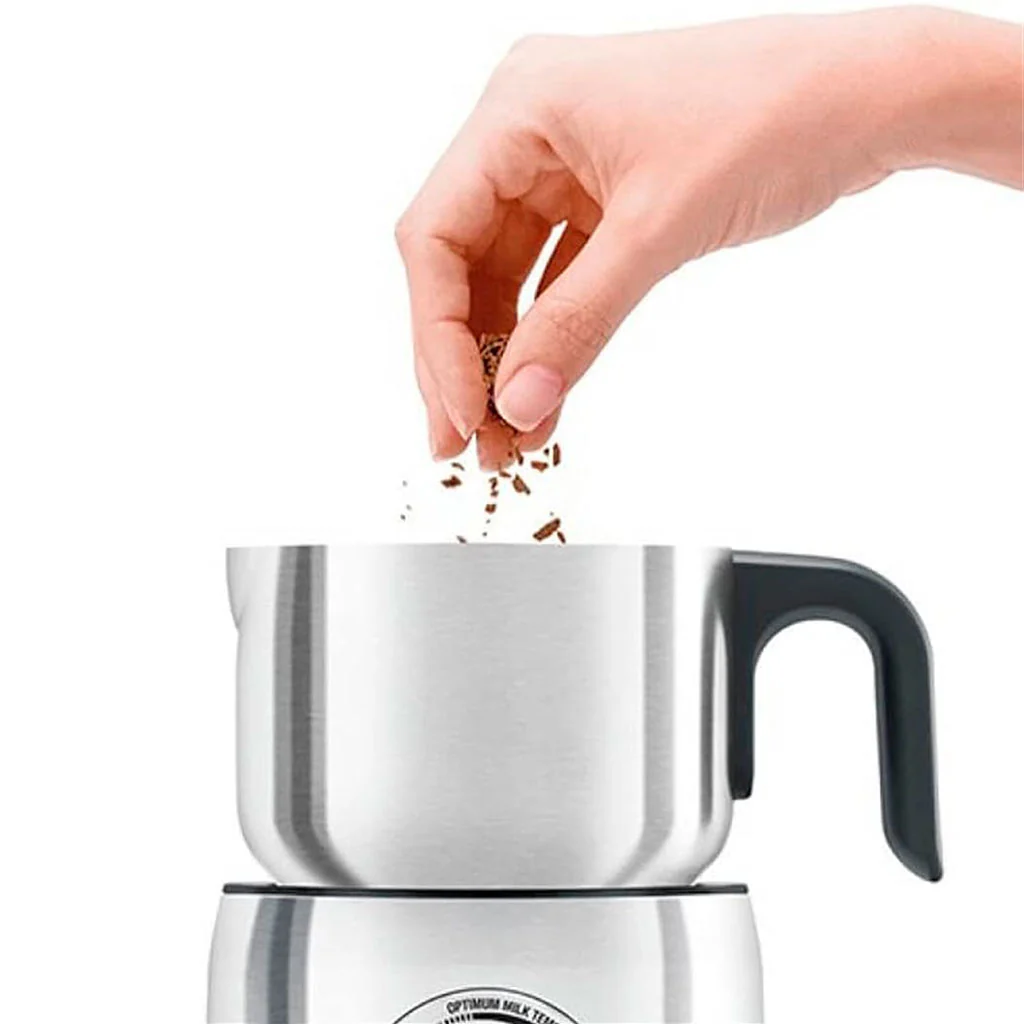 El Espumador de leche eléctrico The Milk Cafe Sage, la marca líder Breville en el mundo del café, es el aliado perfecto para los amantes del café, el chocolate caliente y otras bebidas… ¡Podrás preparar tus bebidas calientes y espumosas favoritas! Con una potencia de 500 W y una capacidad de llenado máxima de 800 ml, este espumador ha sido diseñado para preparar una espuma de leche perfecta, lo que permitirá a ti y los tuyos disfrutar de la calidad de una cafetería en la comodidad de tu hogar. Es ideal no solo para café, sino también para chocolate caliente, té chai y cualquier otra bebida a base de leche que necesite un toque cremoso.