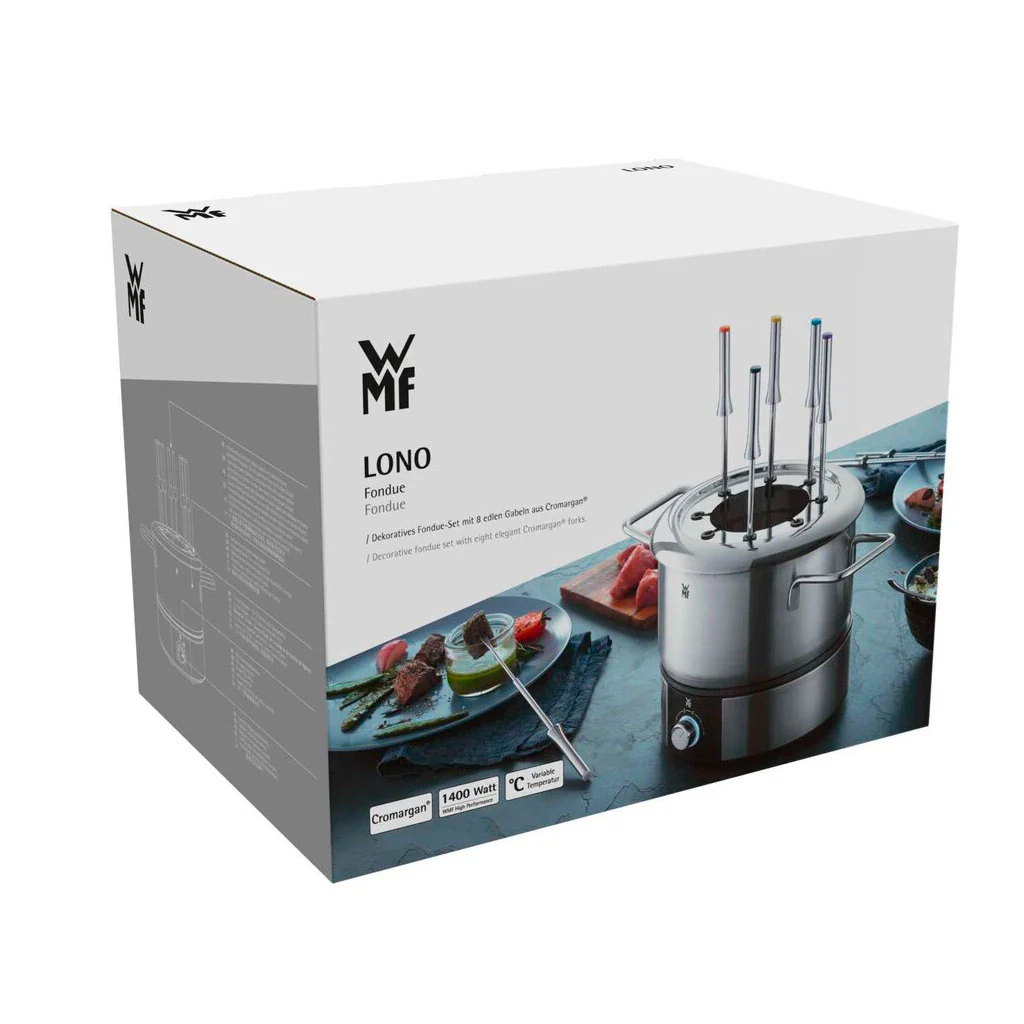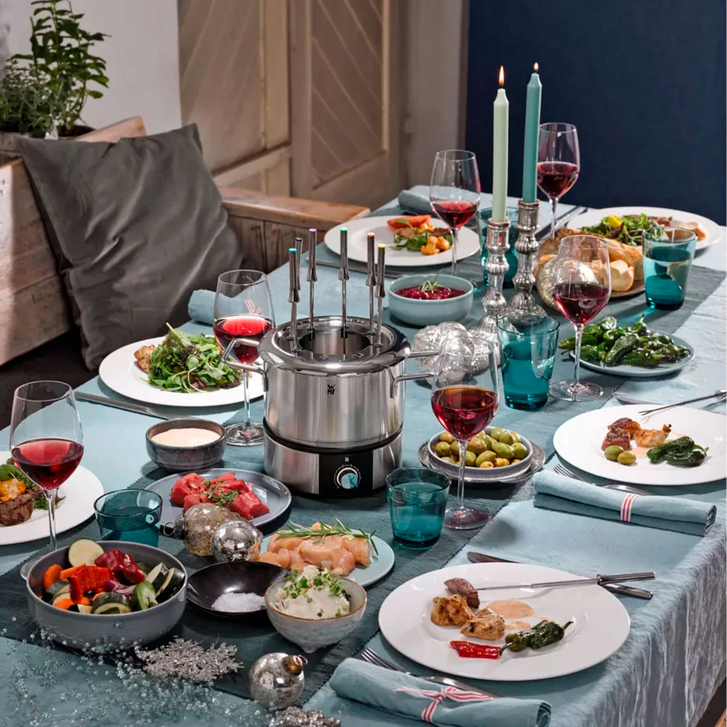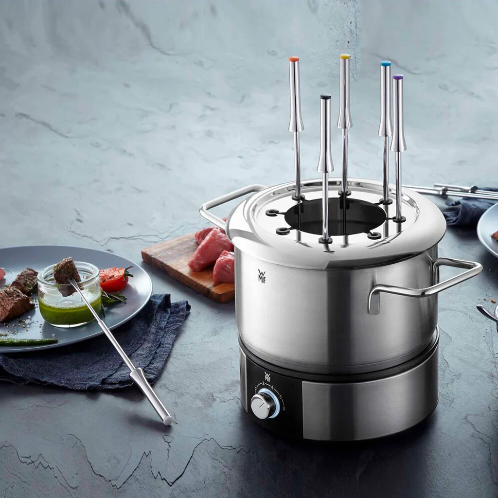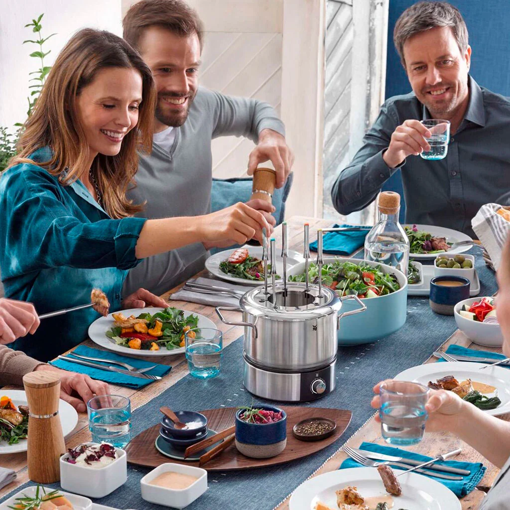 La Fondue LONO de WMF es la elección perfecta para convertir tus comidas festivas en una experiencia llena de sabor y camaradería. Este clásico de invierno para entrar en calor y de las cenas veraniegas para evitar el lío en la cocina es mucho más que una forma de cocinar: es una pieza central decorativa que roba miradas en cualquier mesa.