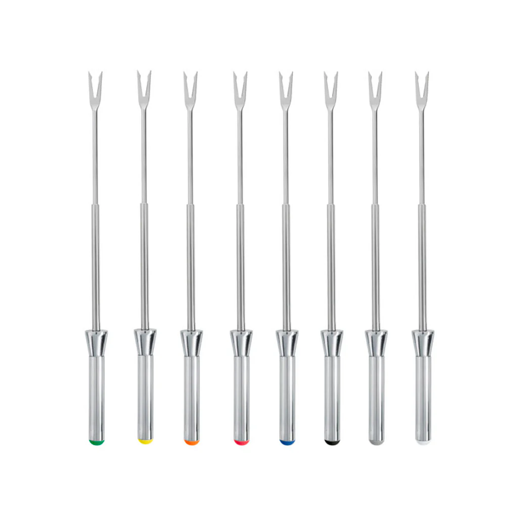 Incluye 8 Tenedores de Fondue: ¿Qué es una fondue sin tenedores? Este set incluye ocho tenedores de alta calidad, todos con su propia posición de almacenamiento en el inserto de la olla de fondue. Esto garantiza que tus invitados puedan disfrutar de su fondue sin complicaciones.
