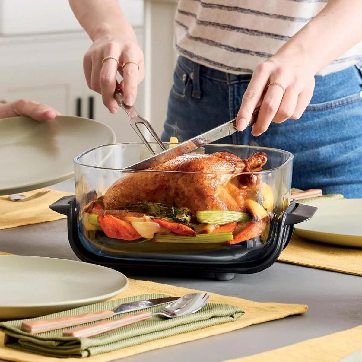 - Sus cubetas de vidrio libres de PFAS te permiten ver cómo se cocinan los alimentos.