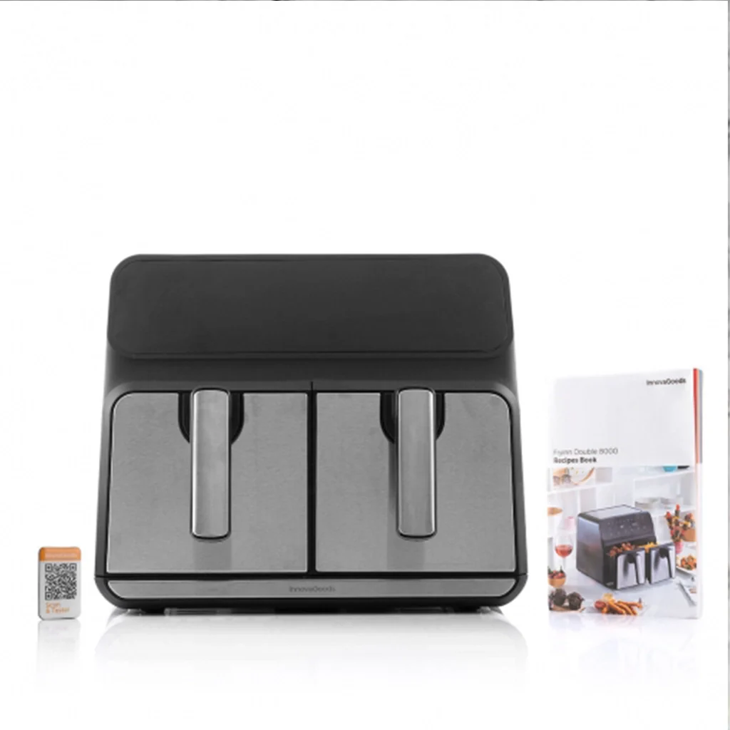 - Freidora de aire DUAL ZONE. Doble cubeta con funcionamiento independiente.
