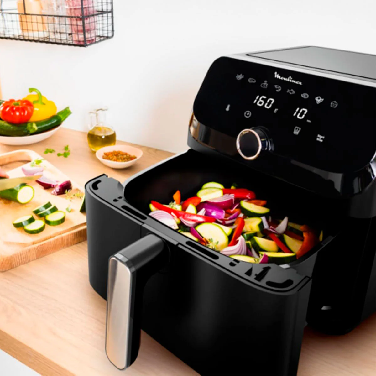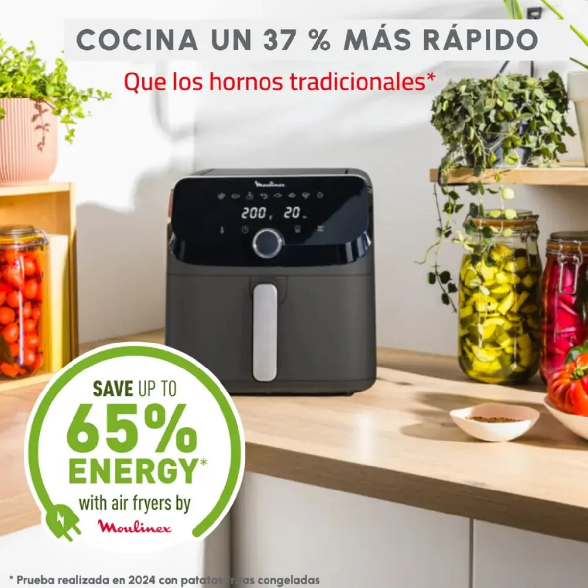 Además, está comprobado que el uso de la freidora de aire Easy Fry Mega Moulinex consume un 65% menos de energía eléctrica que otros sistemas de cocción de características similares, con lo que es un magnífico aliado para ahorrar dinerito. También merece la pena destacar que necesita un 37% menos de tiempo para preparar la comida.