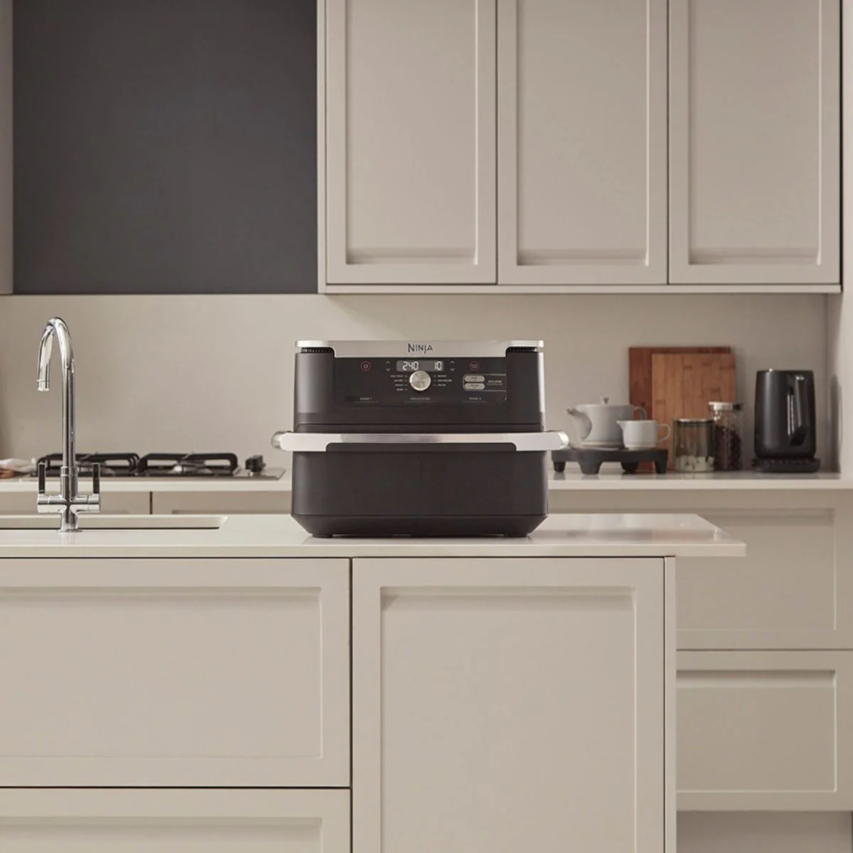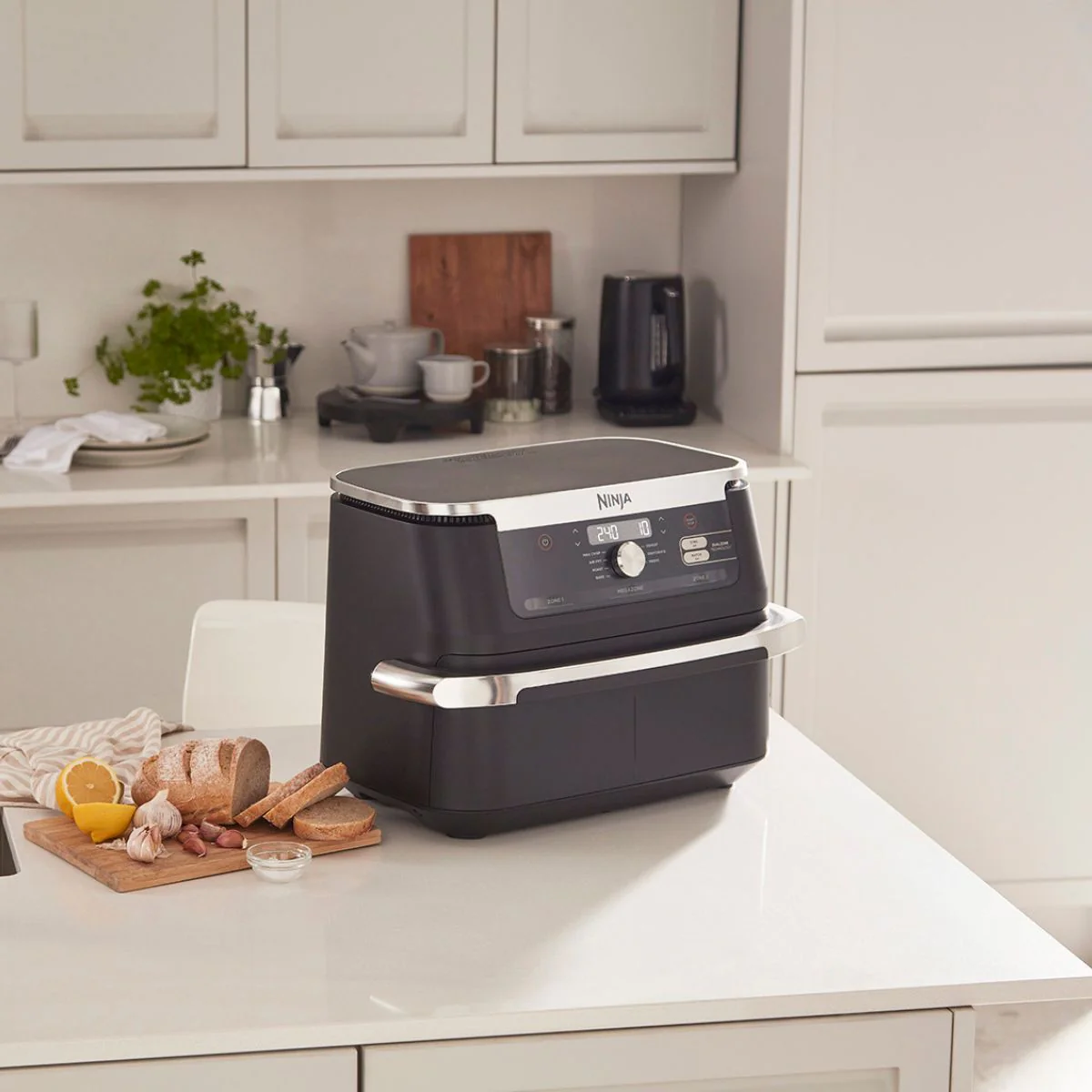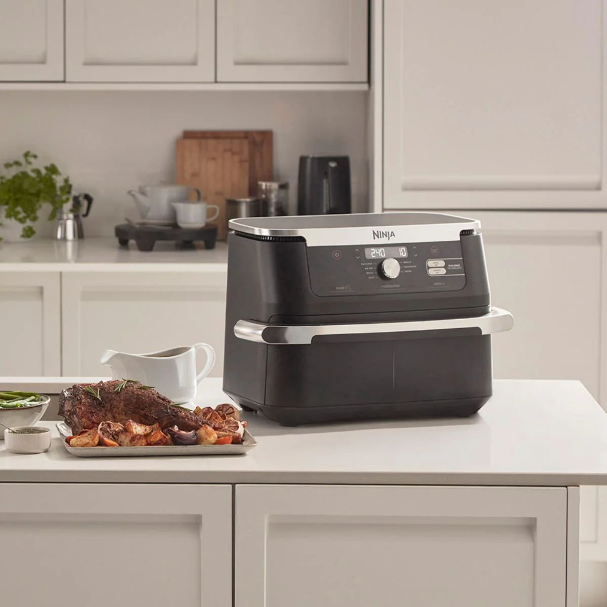- Freidora de aire compacta XL, convertible en freidora doble.