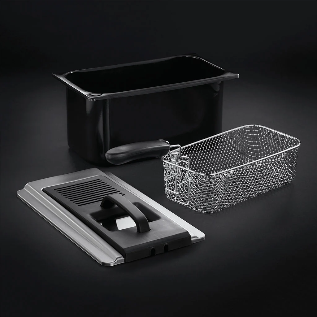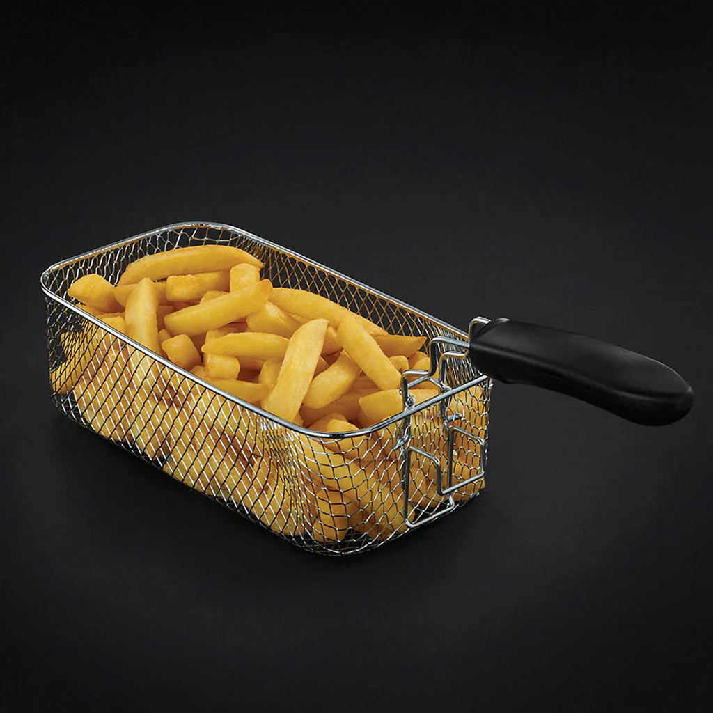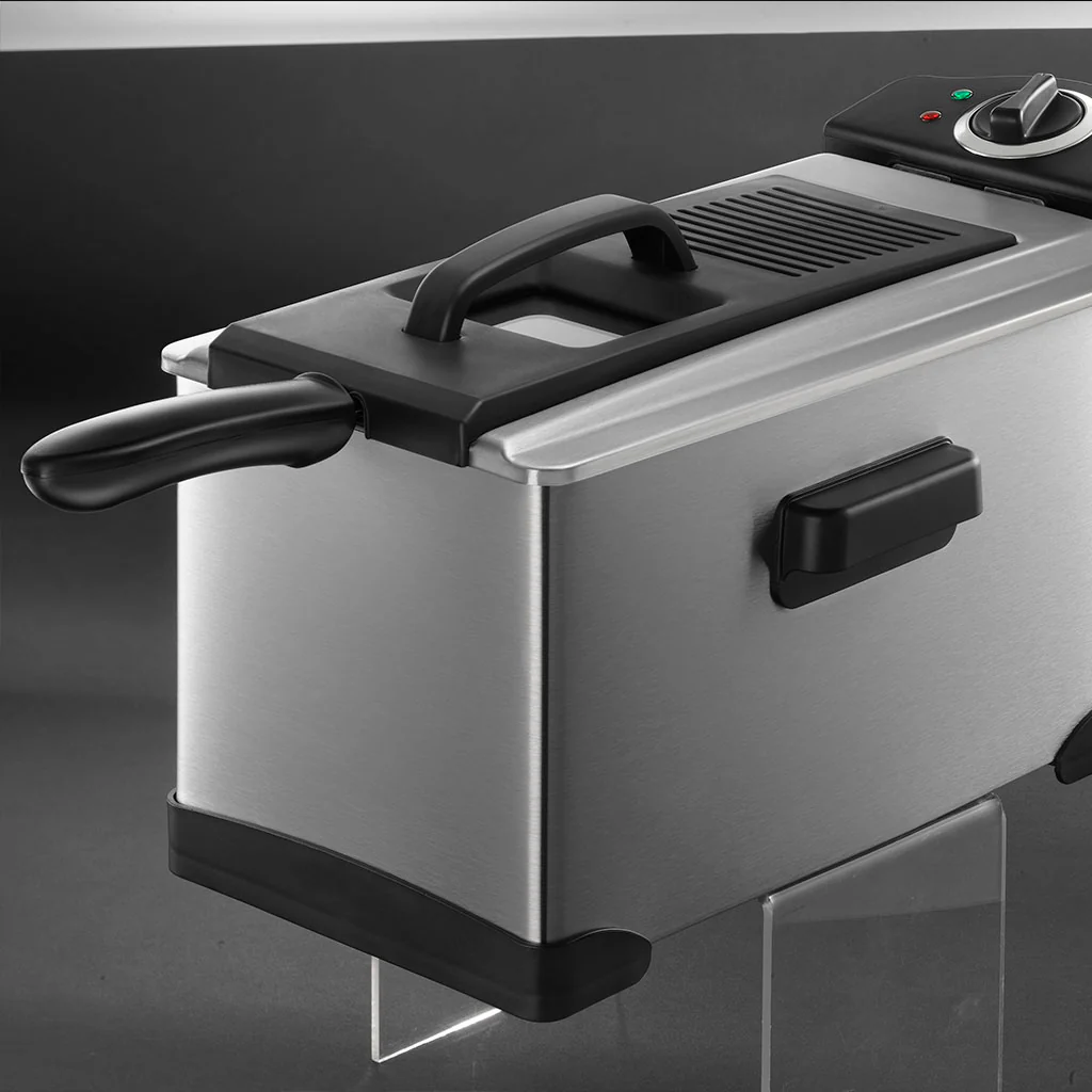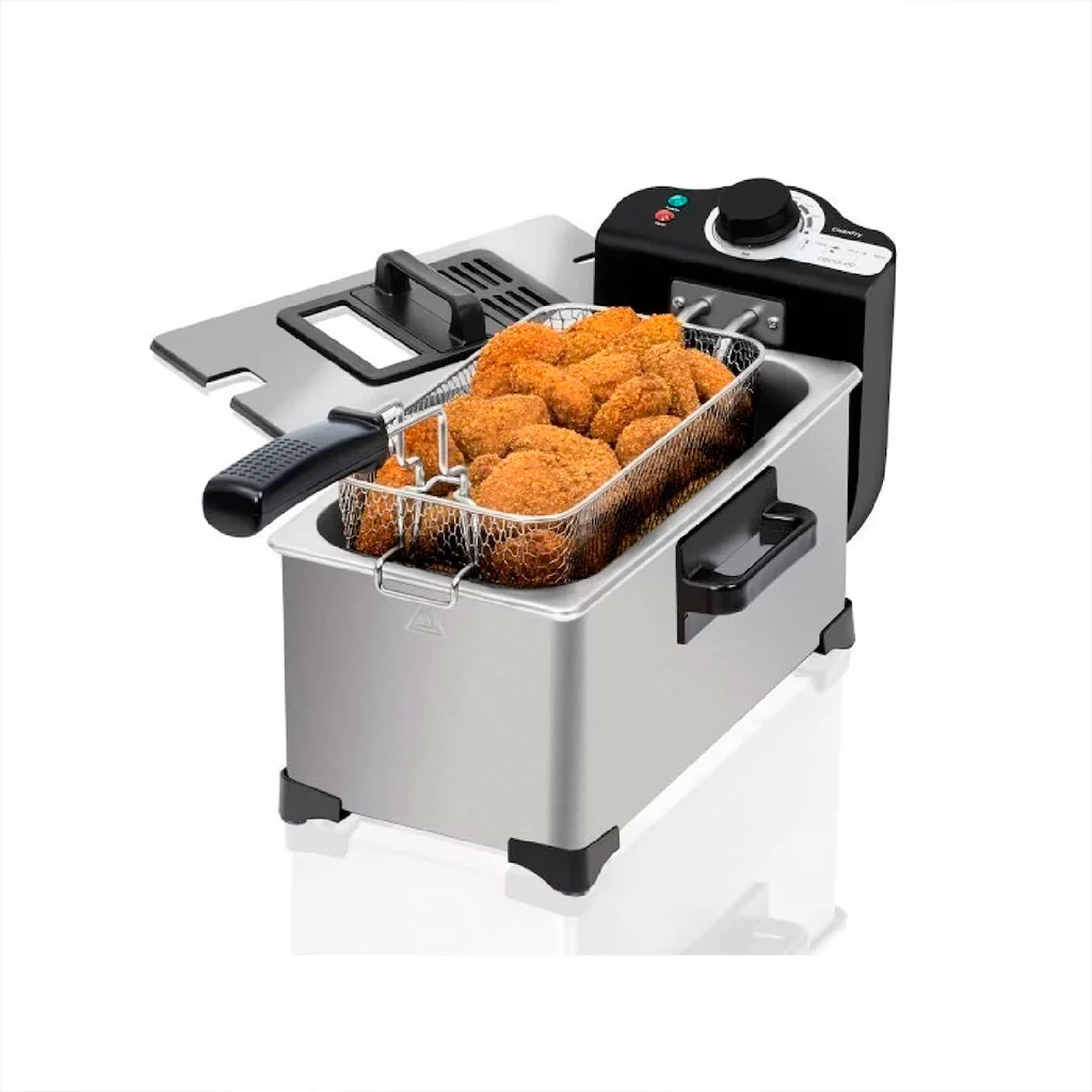 Esta freidora, fabricada con acero inoxidable cepillado, es la compañera perfecta para preparar desde crujientes patatas fritas hasta deliciosos nuggets, jugosas hamburguesas o incluso dulces caseros. La cubeta es desmontable con lo que podrás limpiarla muy rápida y fácilmente, mientras que el termostato ajustable te permite elegir la temperatura exacta entre 160°C y 190°C para que cada comida tenga la cocción que desees y salga perfecta. ¡Siempre a tu gusto y sin complicaciones!